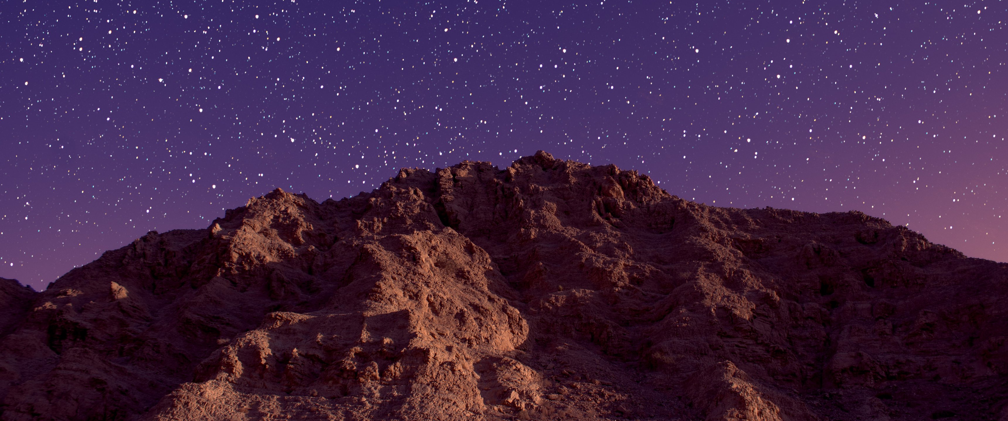 Wallpaper: starry sky, rocks - 3440x1440