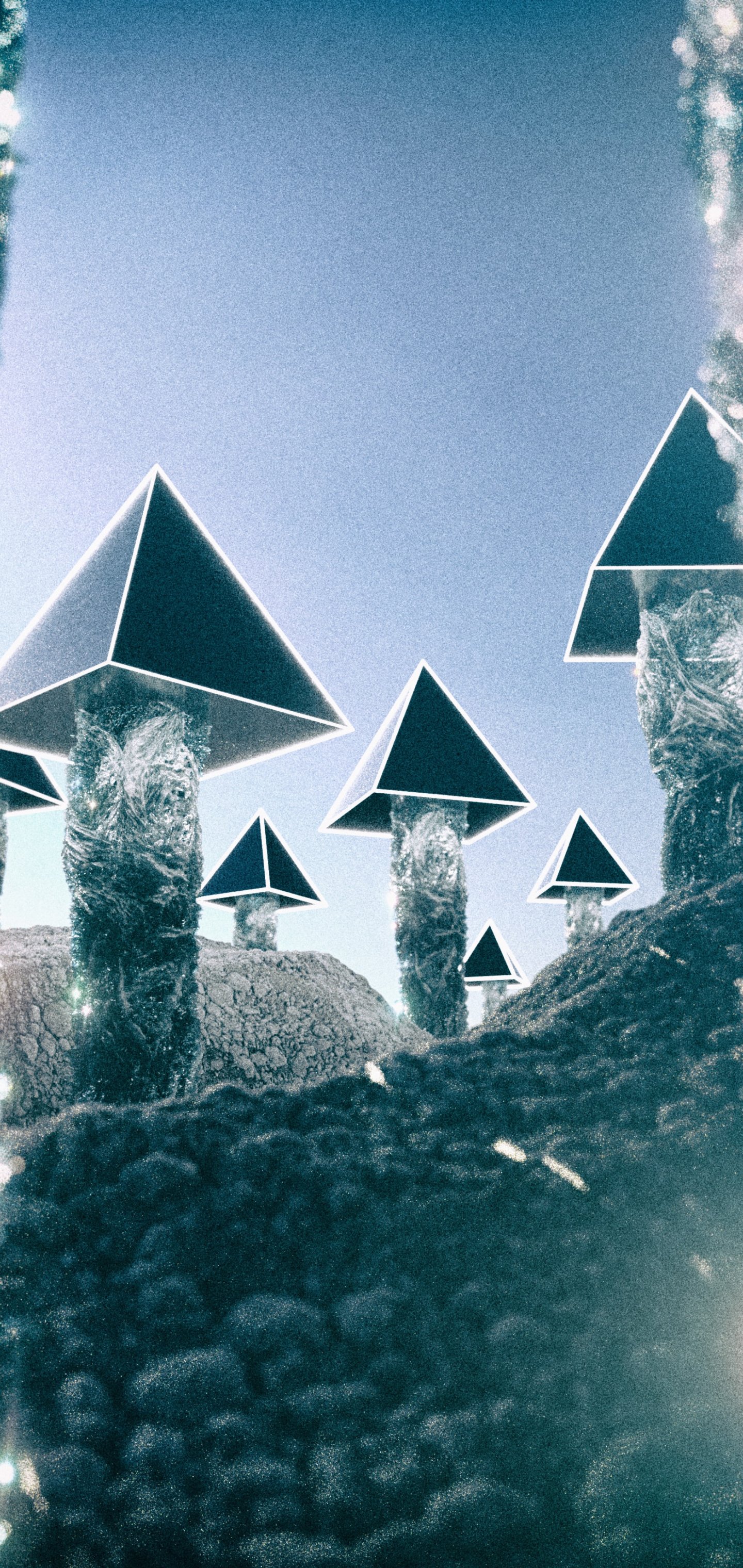 Wallpaper: pyramids, mushrooms - 1440x3040