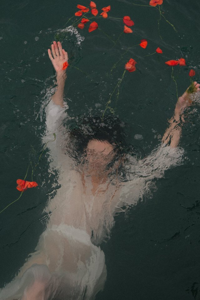 Wallpaper: underwater, girl, flowers - 640x960
