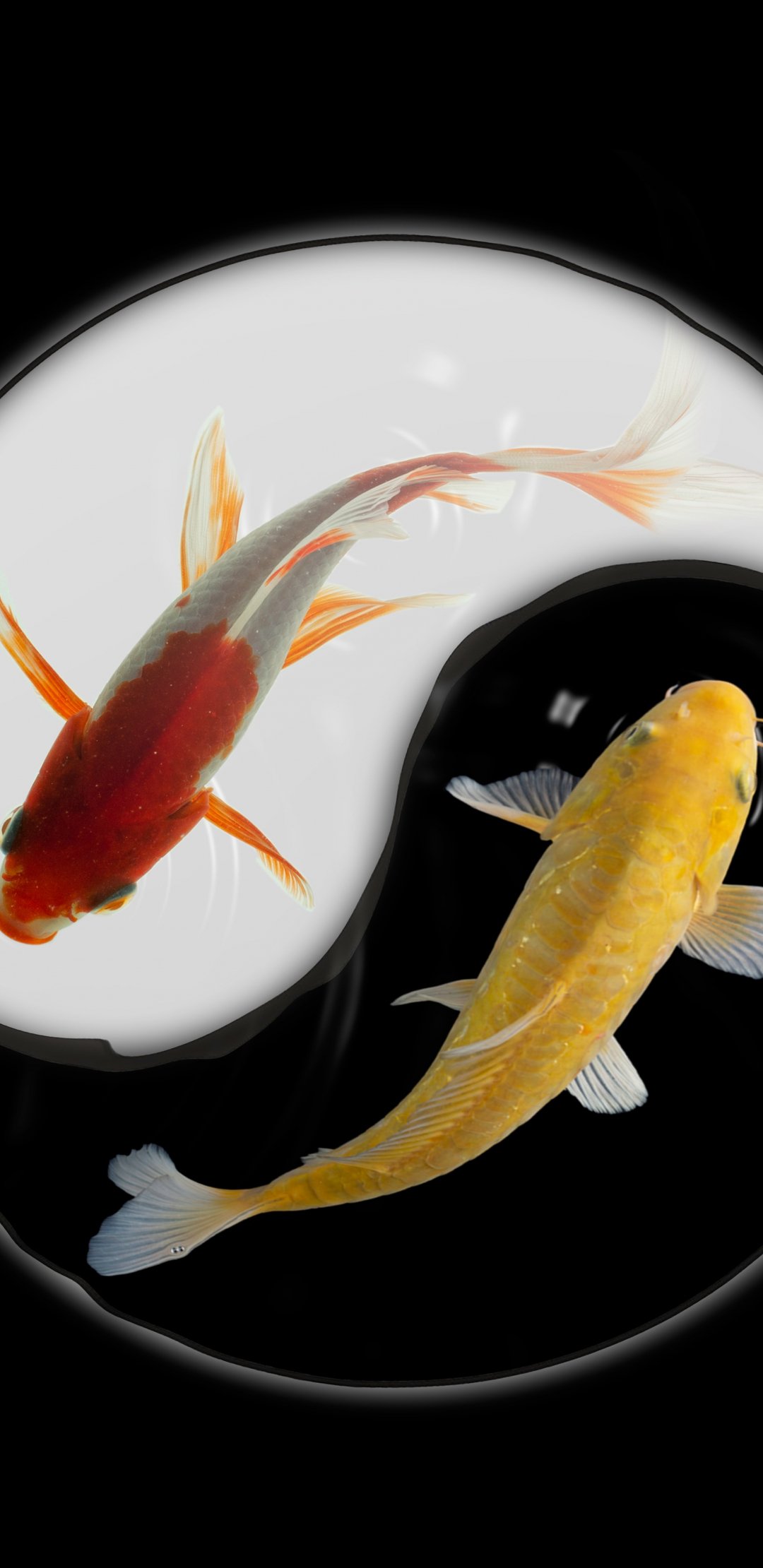 Wallpaper: yin and yang, carps - 1080x2220