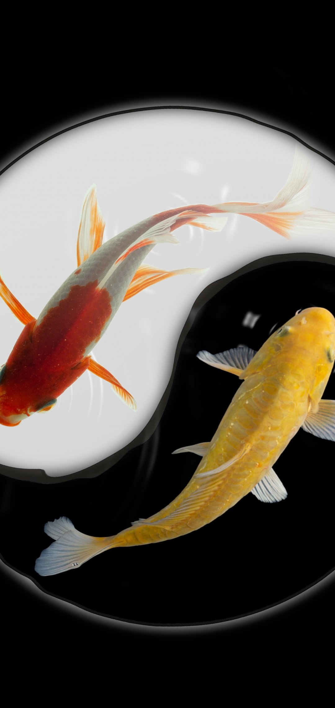 Wallpaper: yin and yang, carps - 1080x2280