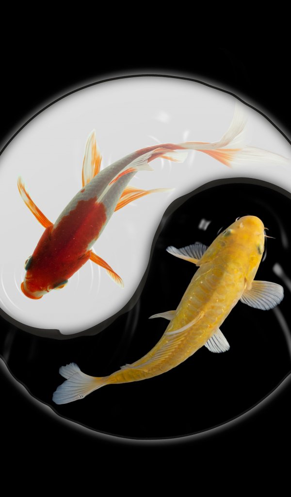Wallpaper: yin and yang, carps - 600x1024
