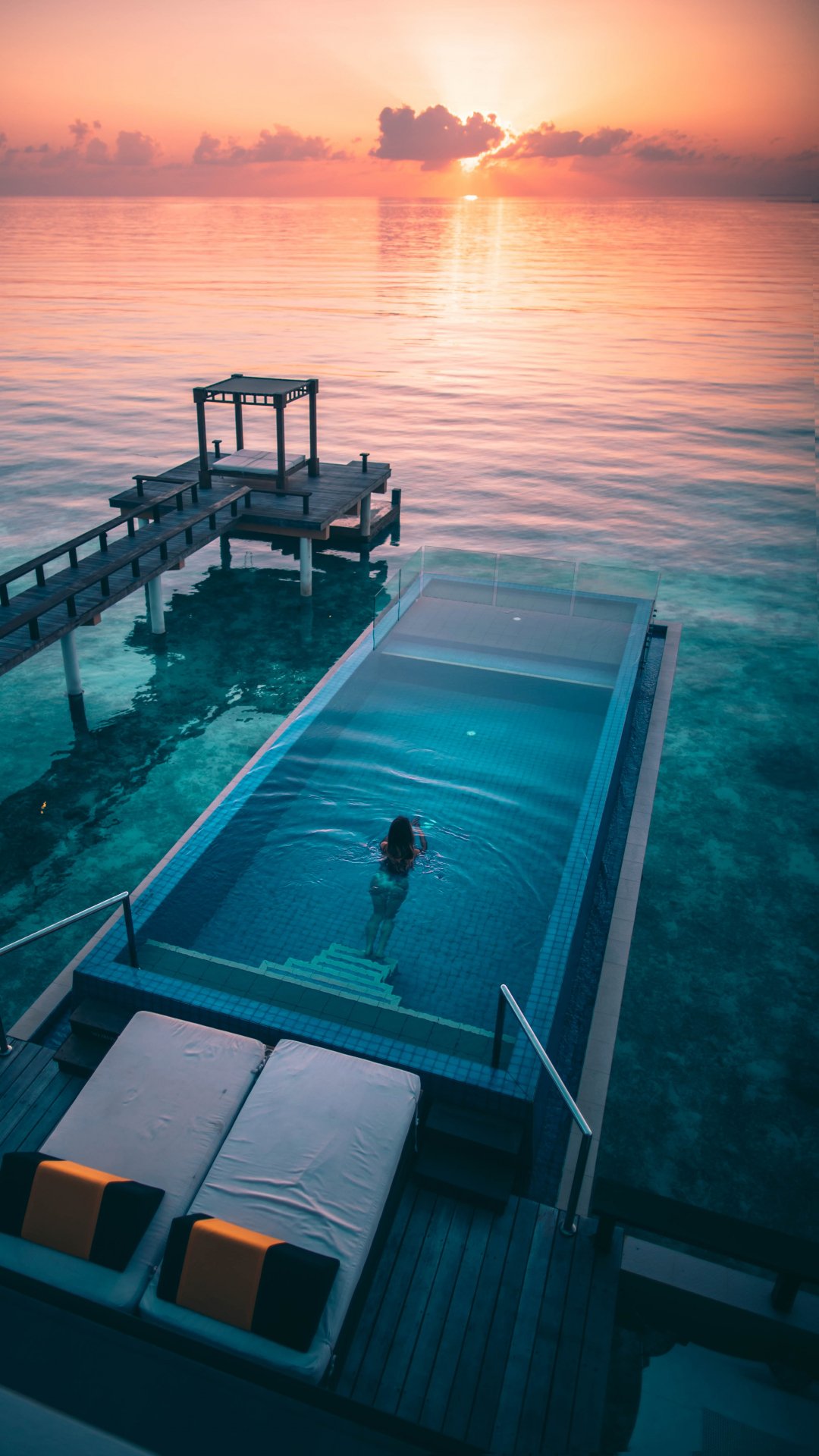 Wallpaper: Maldives, sunset, swimming pool - 1080x1920