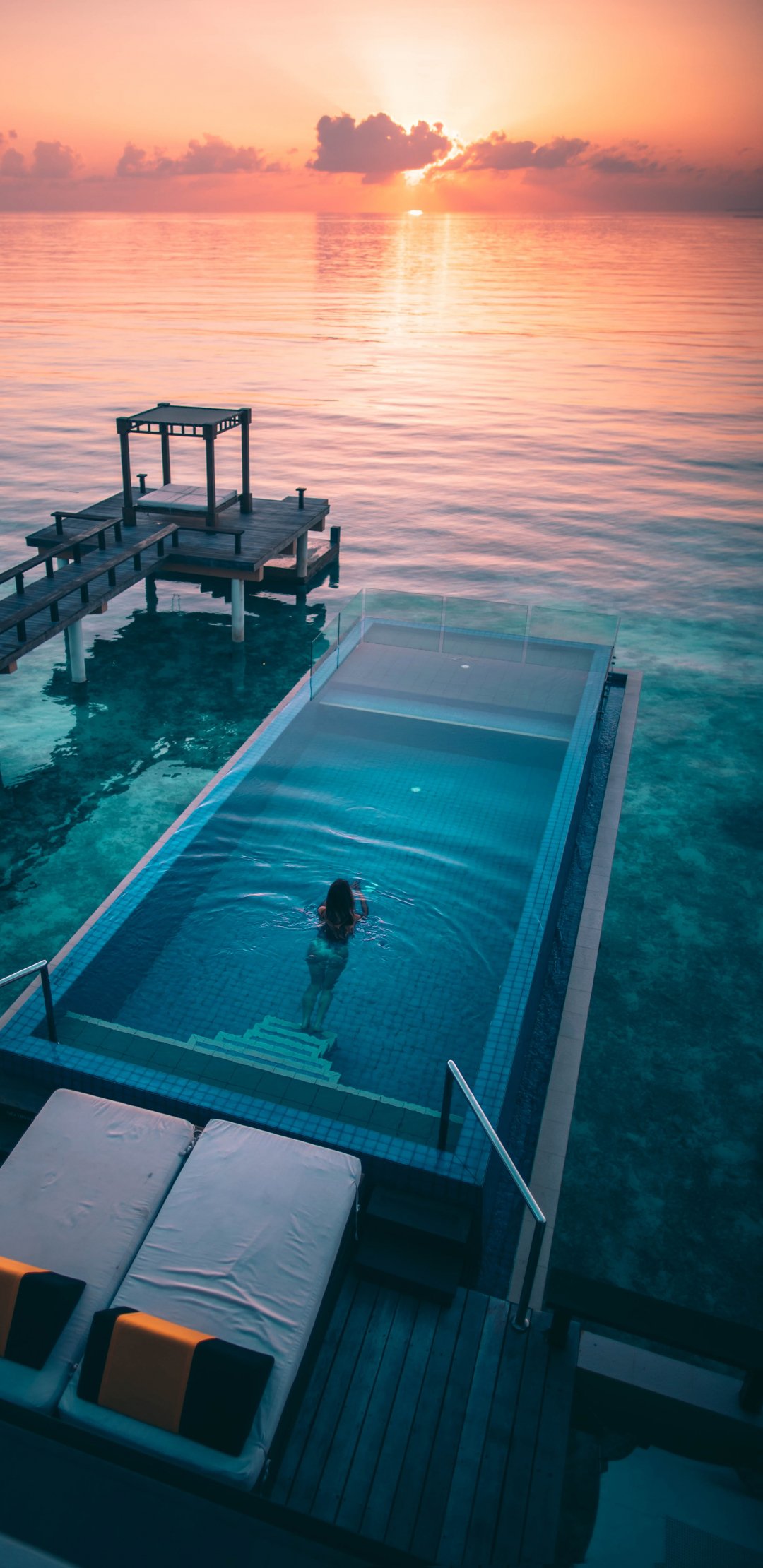 Wallpaper: Maldives, sunset, swimming pool - 1080x2220