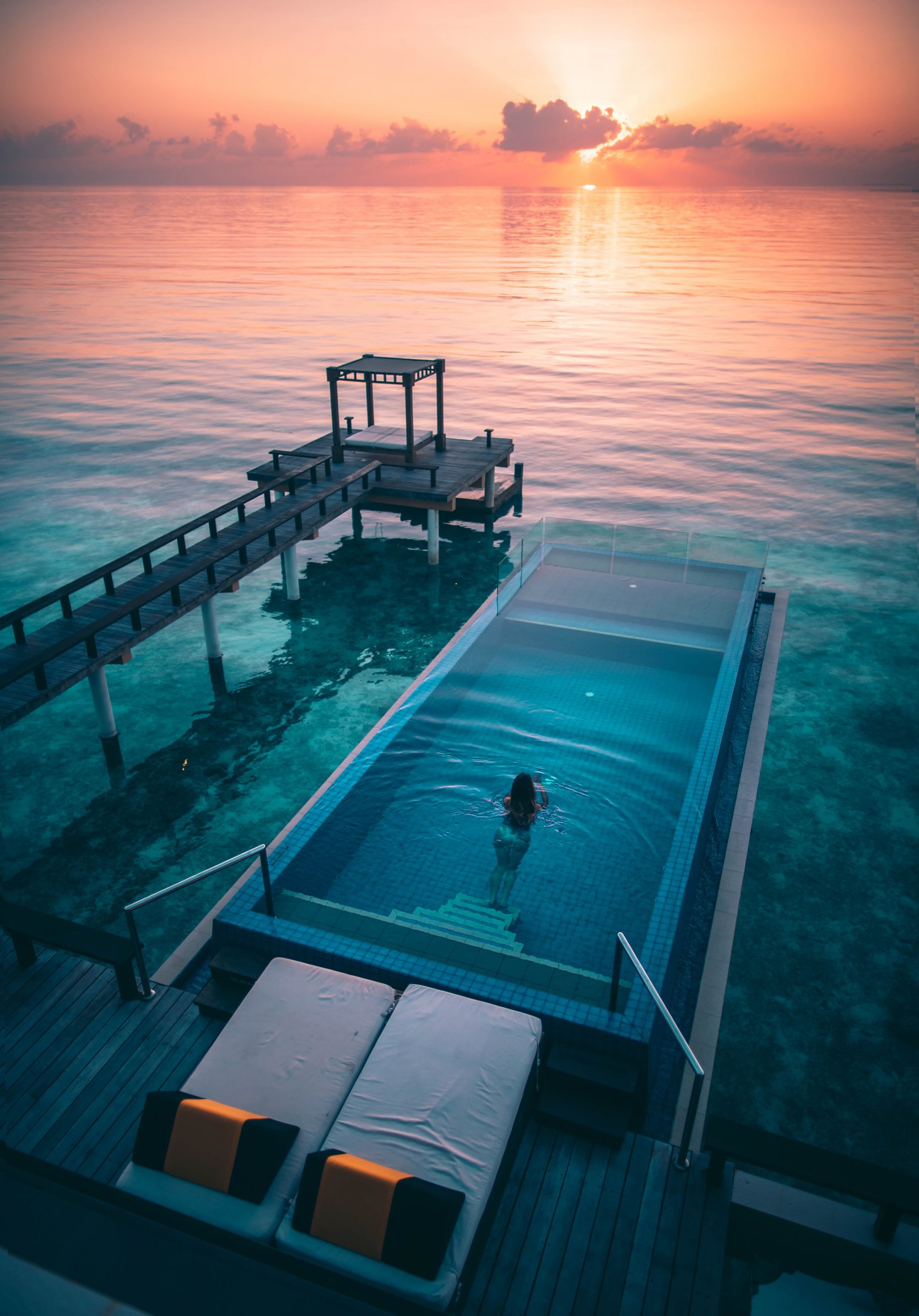 Wallpaper: Maldives, sunset, swimming pool - 1668x2388