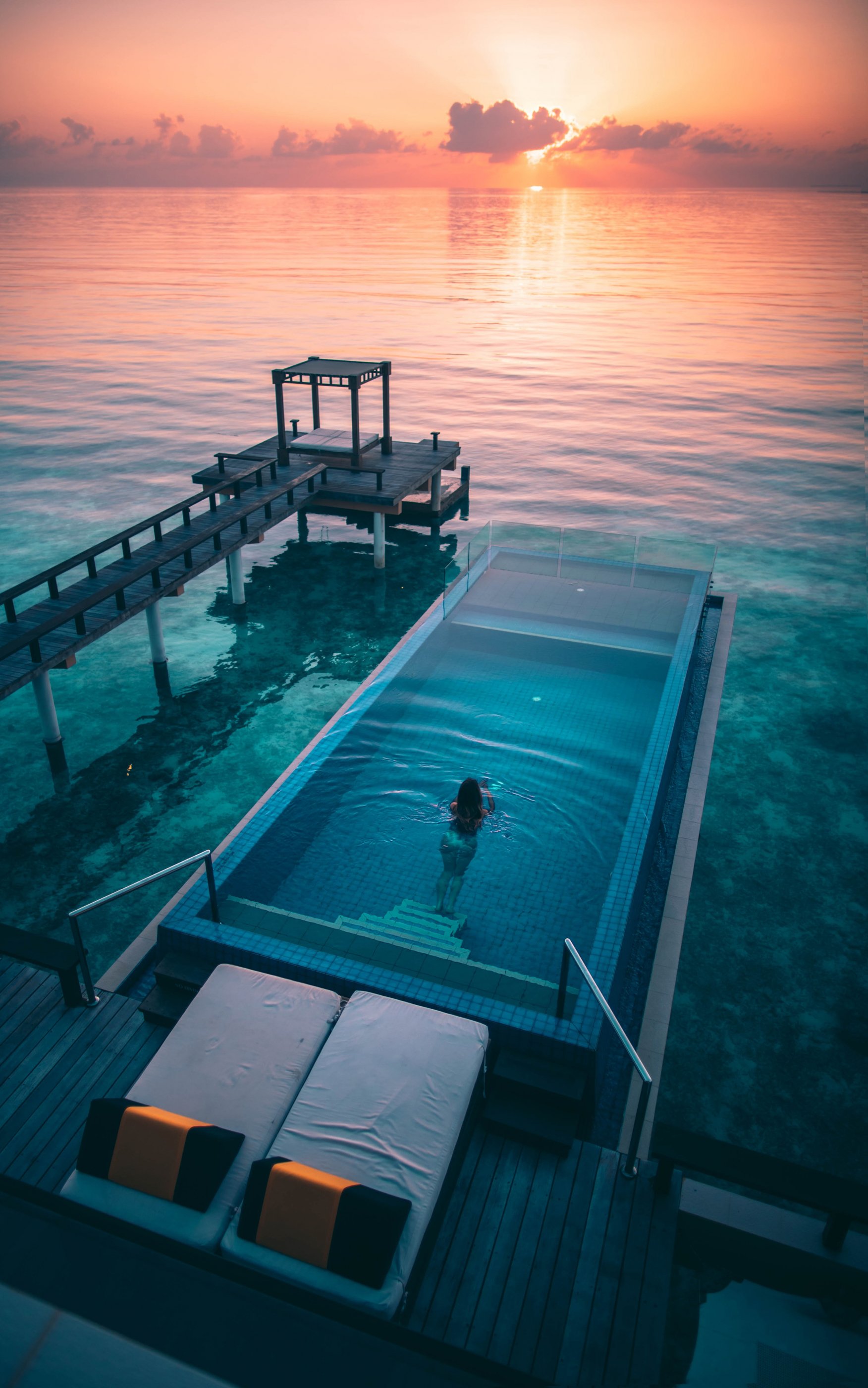 Wallpaper: Maldives, sunset, swimming pool - 1752x2800