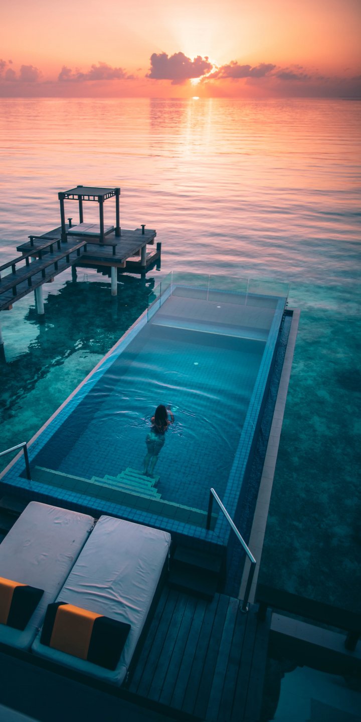 Wallpaper: Maldives, sunset, swimming pool - 720x1440