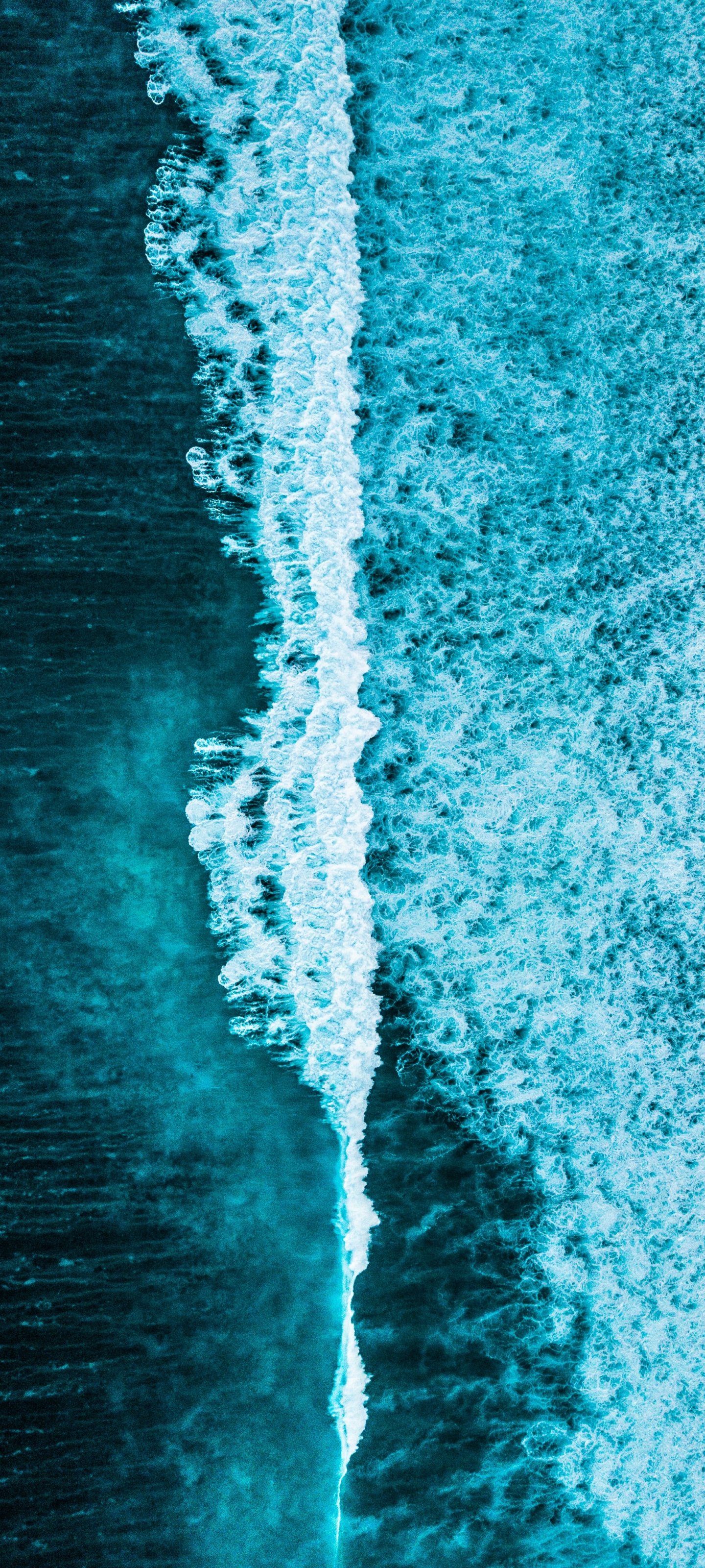 Wallpaper: sea waves, top view, blue - 1440x3200
