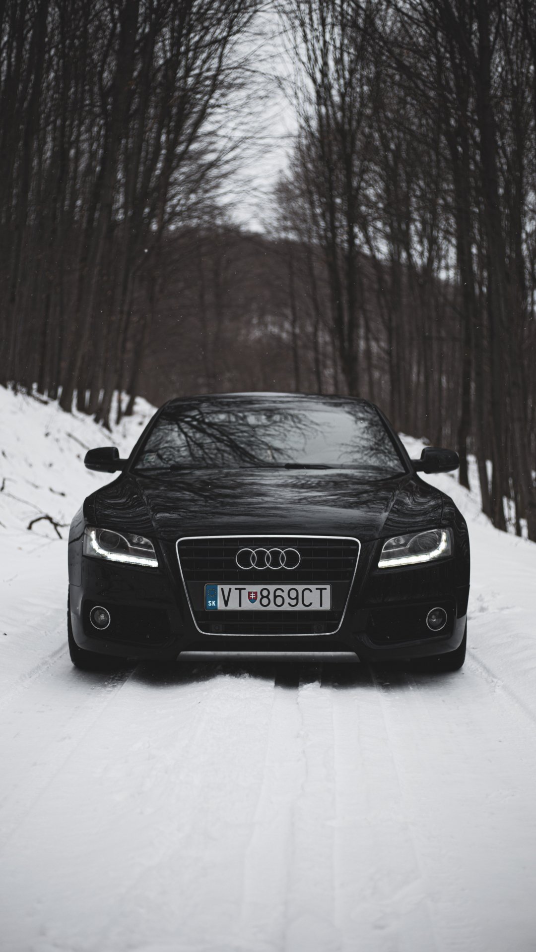 Wallpaper: Audi A5, black and white, winter - 1080x1920