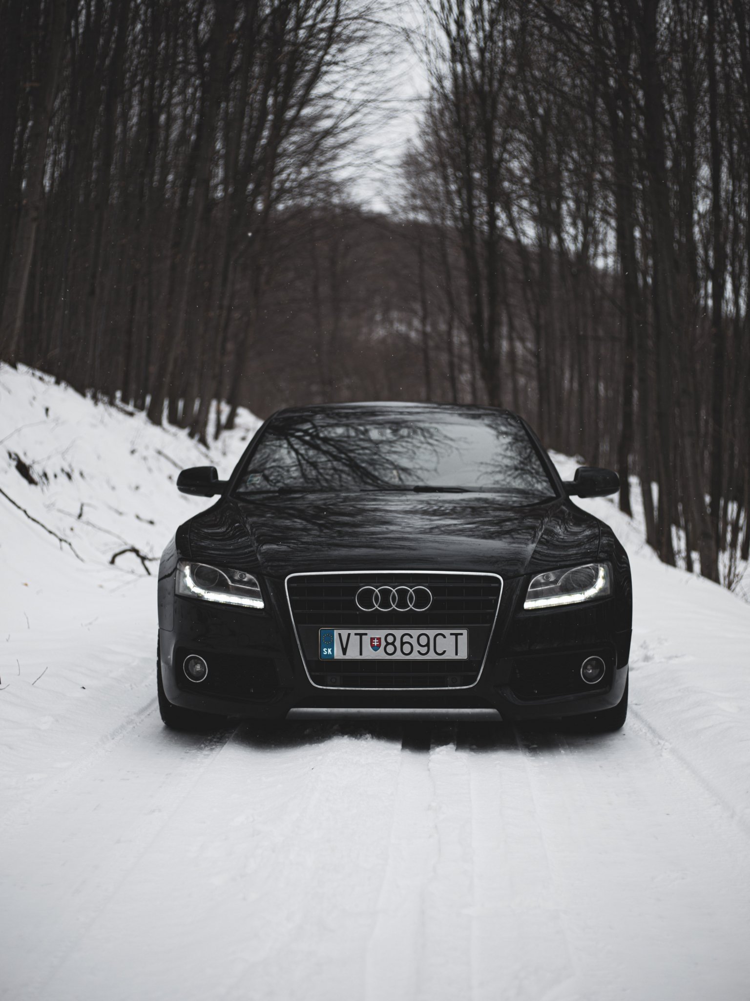 Wallpaper: Audi A5, black and white, winter - 1536x2048