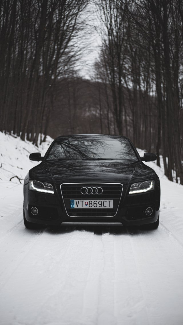 Wallpaper: Audi A5, black and white, winter - 640x1136