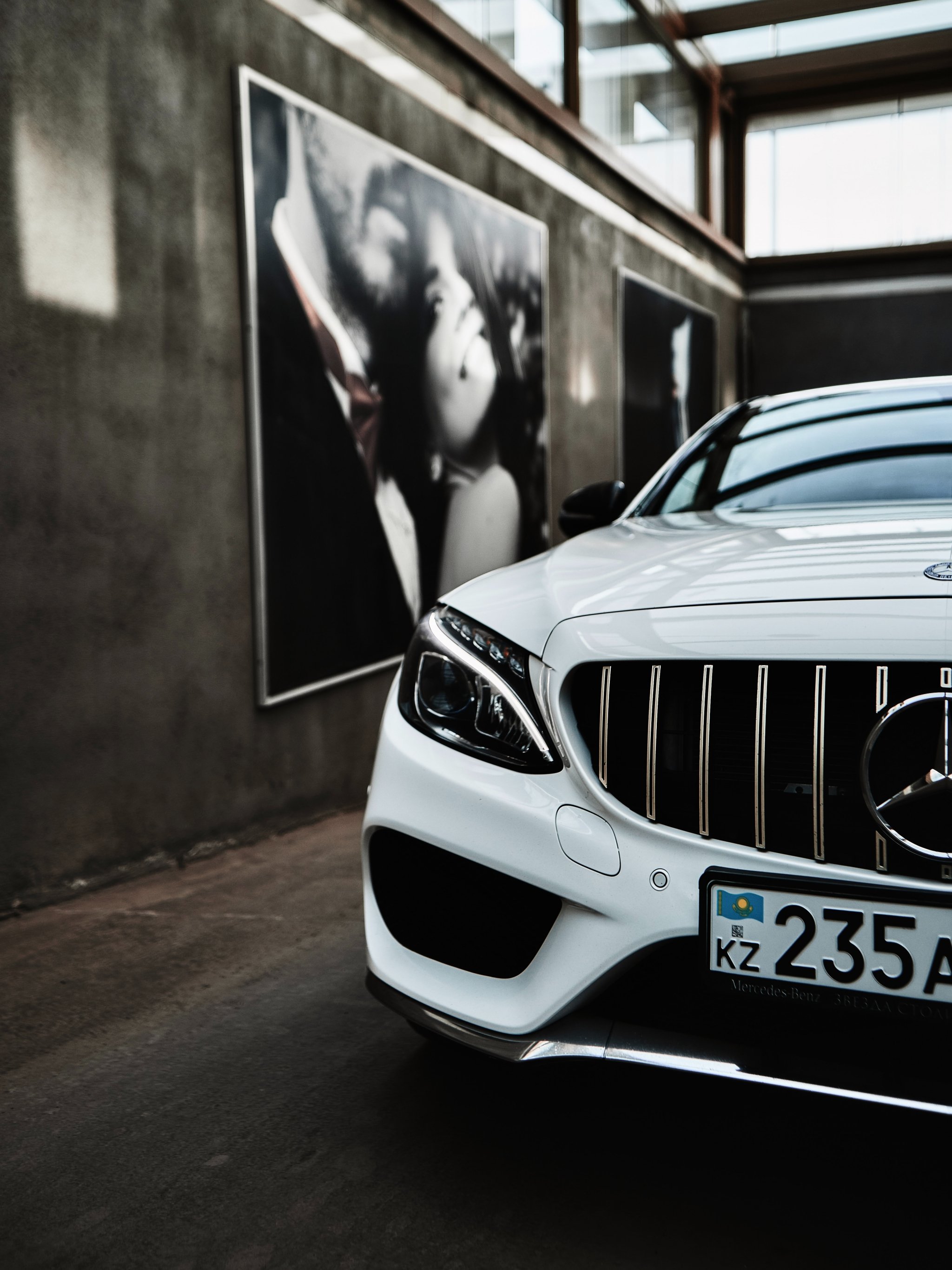 Wallpaper: white mercedes, garage - 2048x2732