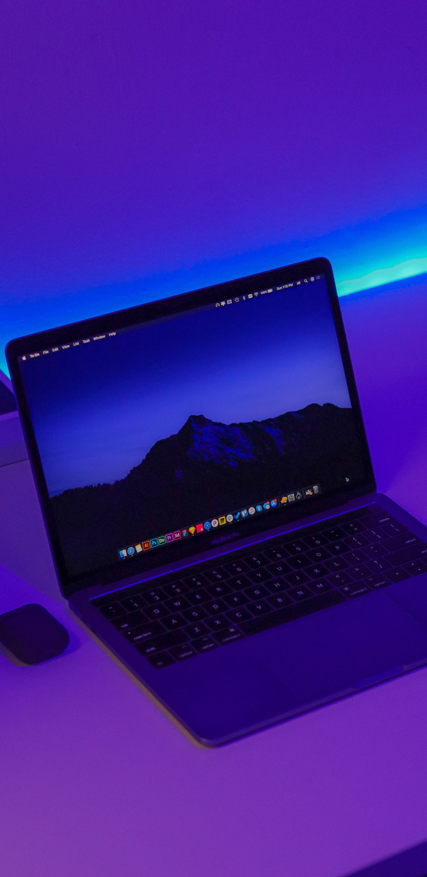 Wallpaper: laptop, purple, interior - 1440x2960