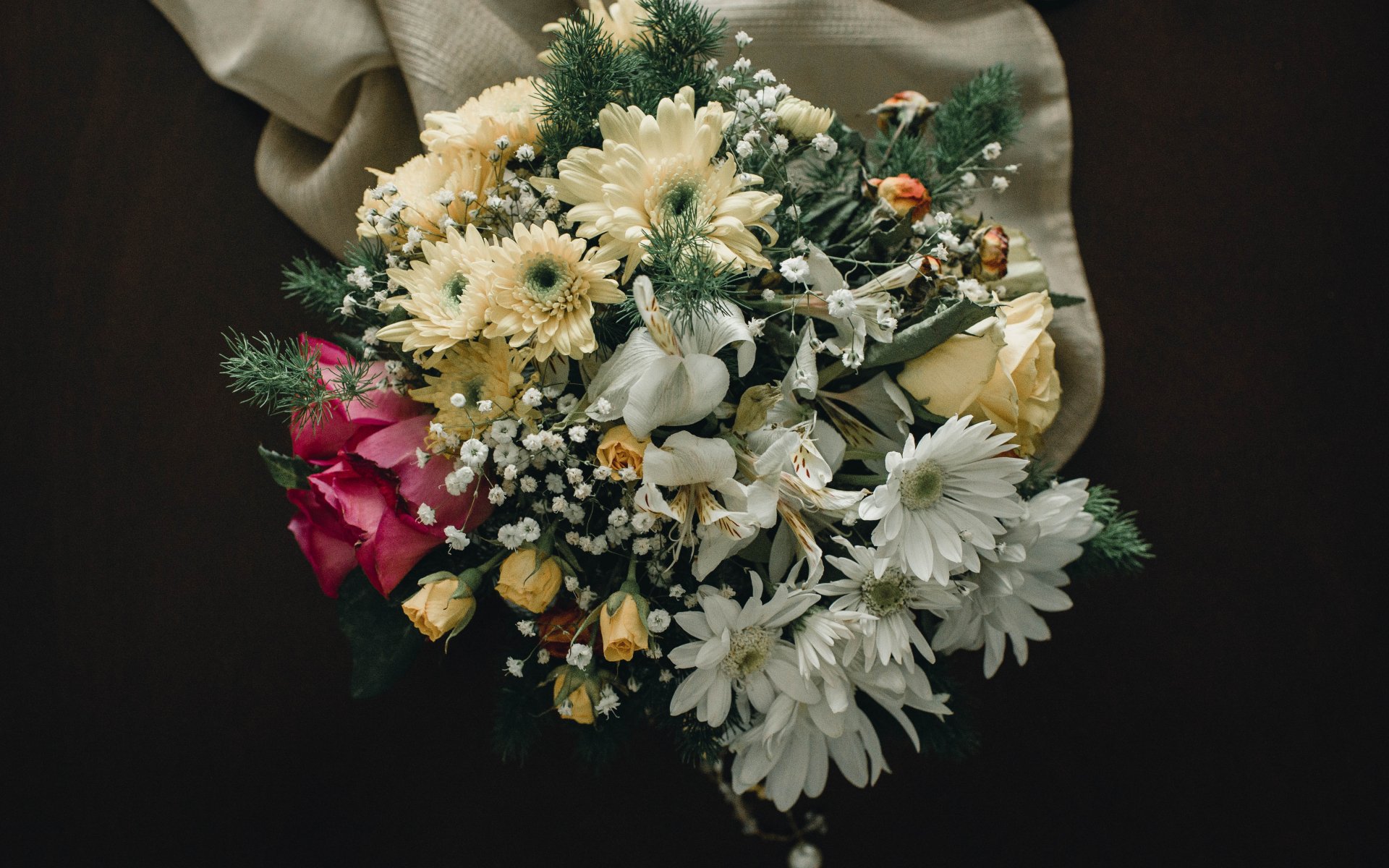 Wallpaper: bouquet of flowers, on black background - 1920x1200