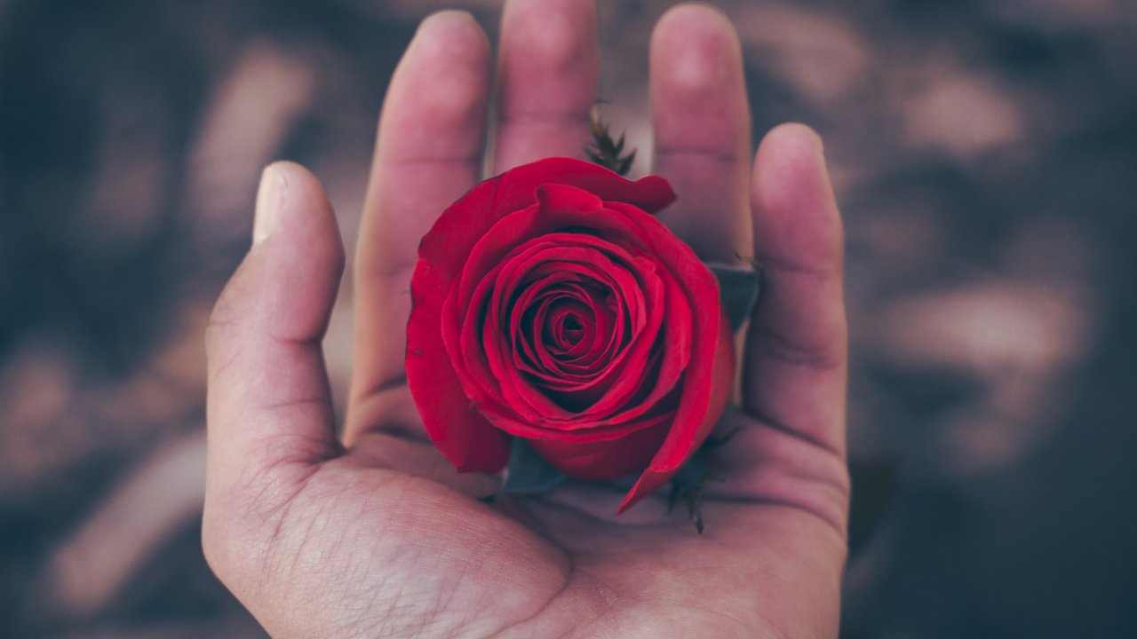 Wallpaper: Valentine's day, rose in the palm of your hand, romance - 1280x720