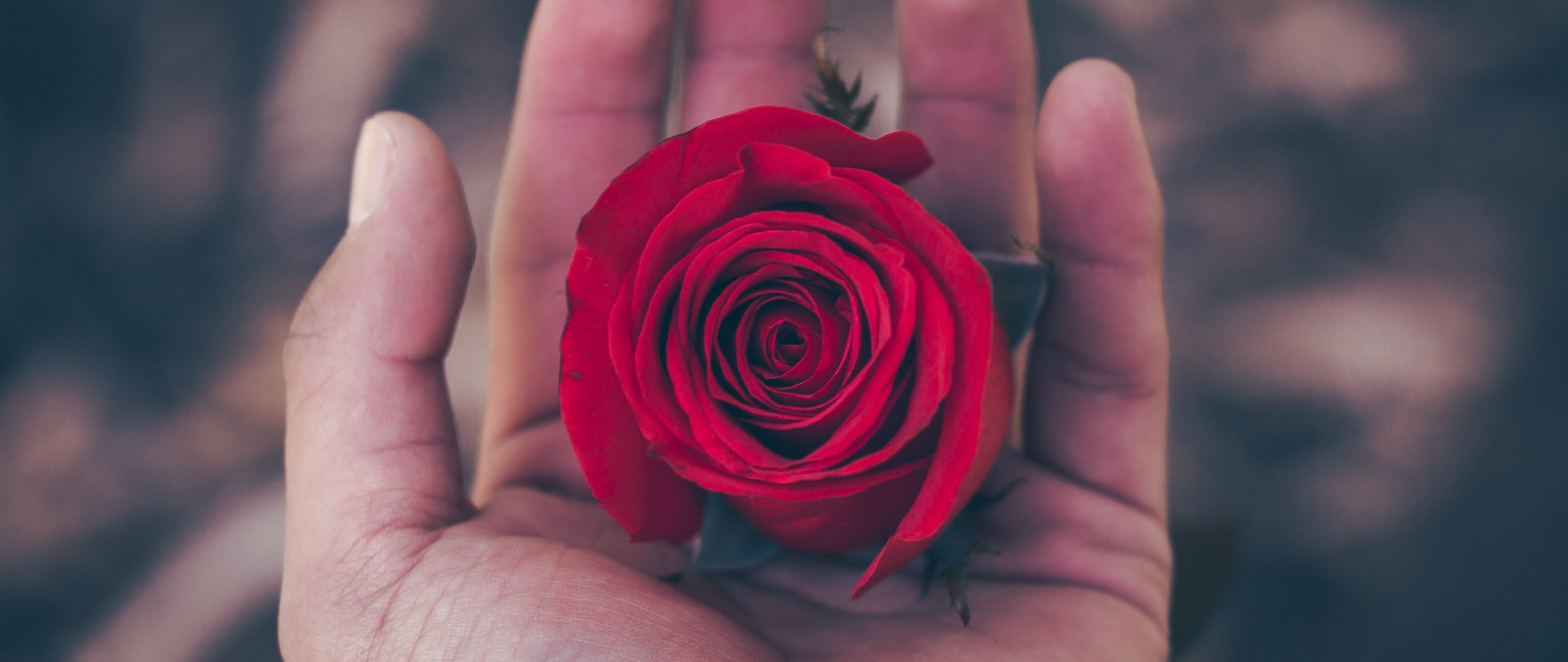 Wallpaper: Valentine's day, rose in the palm of your hand, romance - 2560x1080