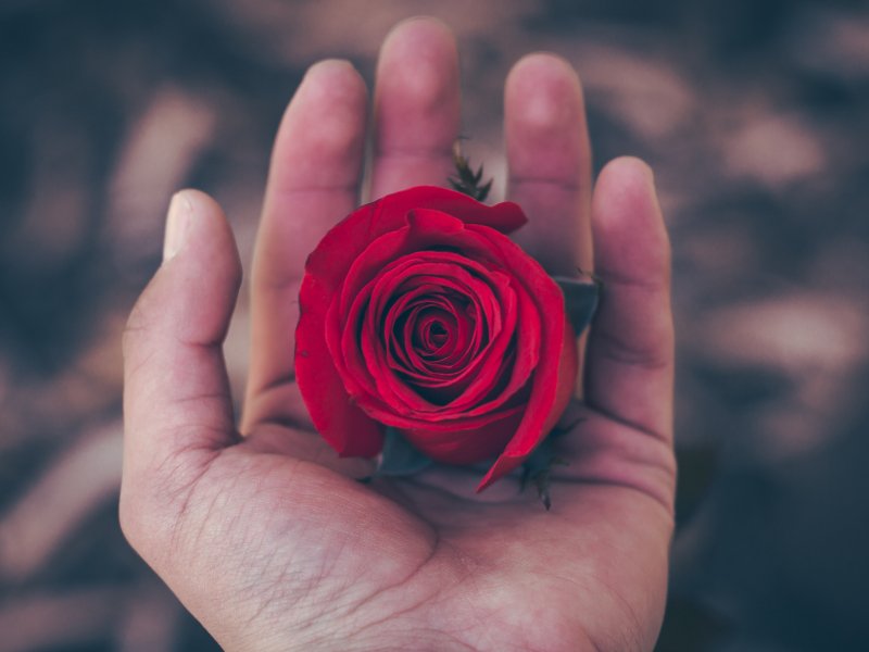 Wallpaper: Valentine's day, rose in the palm of your hand, romance - 800x600