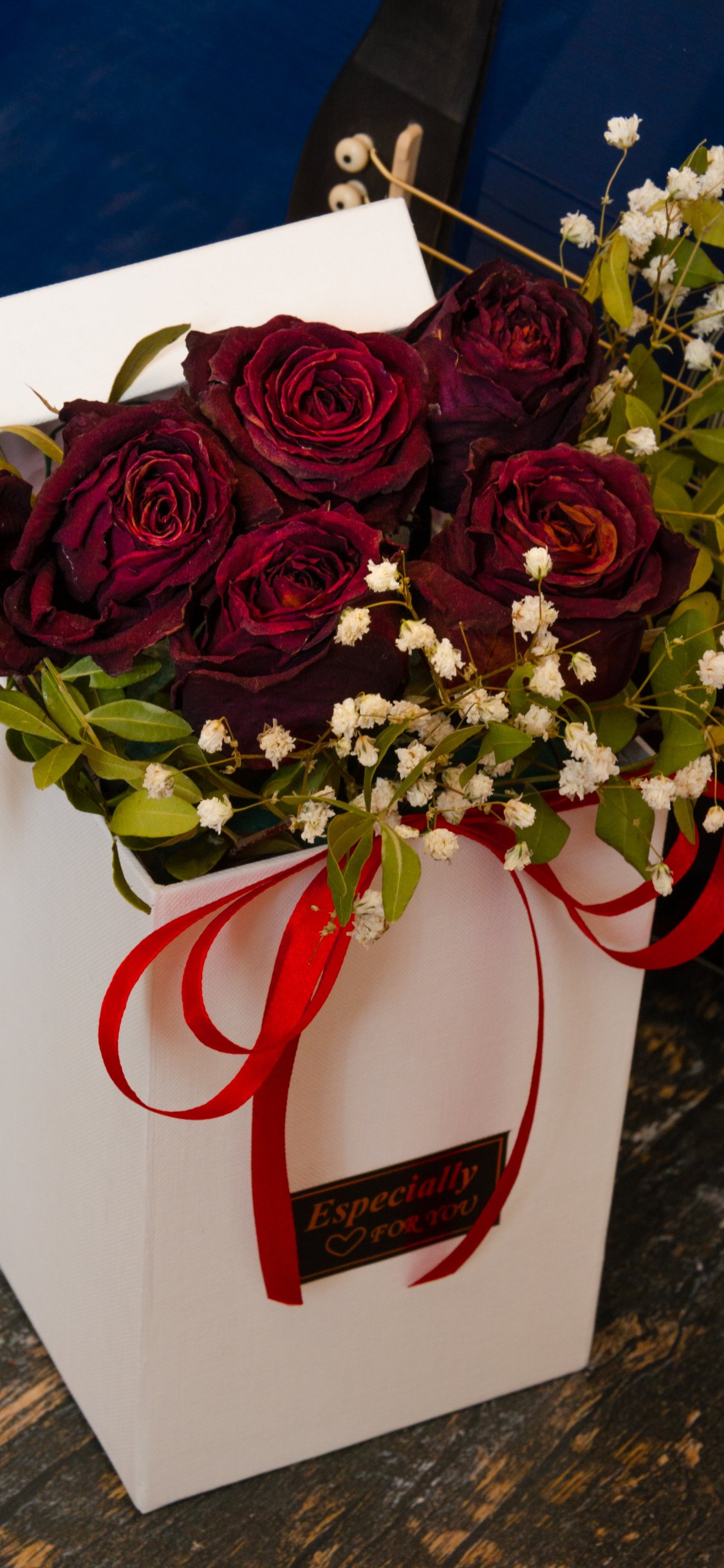 Wallpaper: Valentine's Day, bouquet of roses, gift - 1125x2436