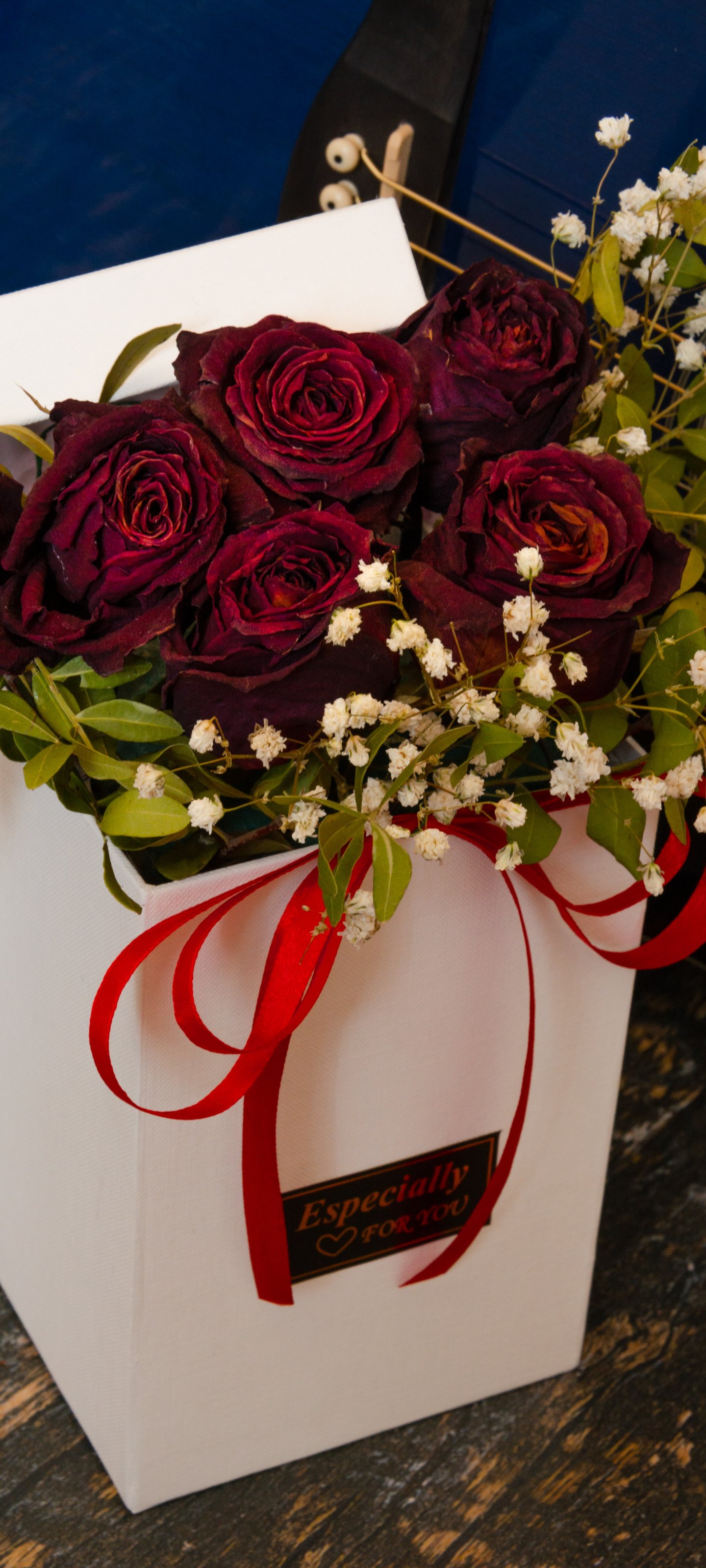 Wallpaper: Valentine's Day, bouquet of roses, gift - 1440x3200