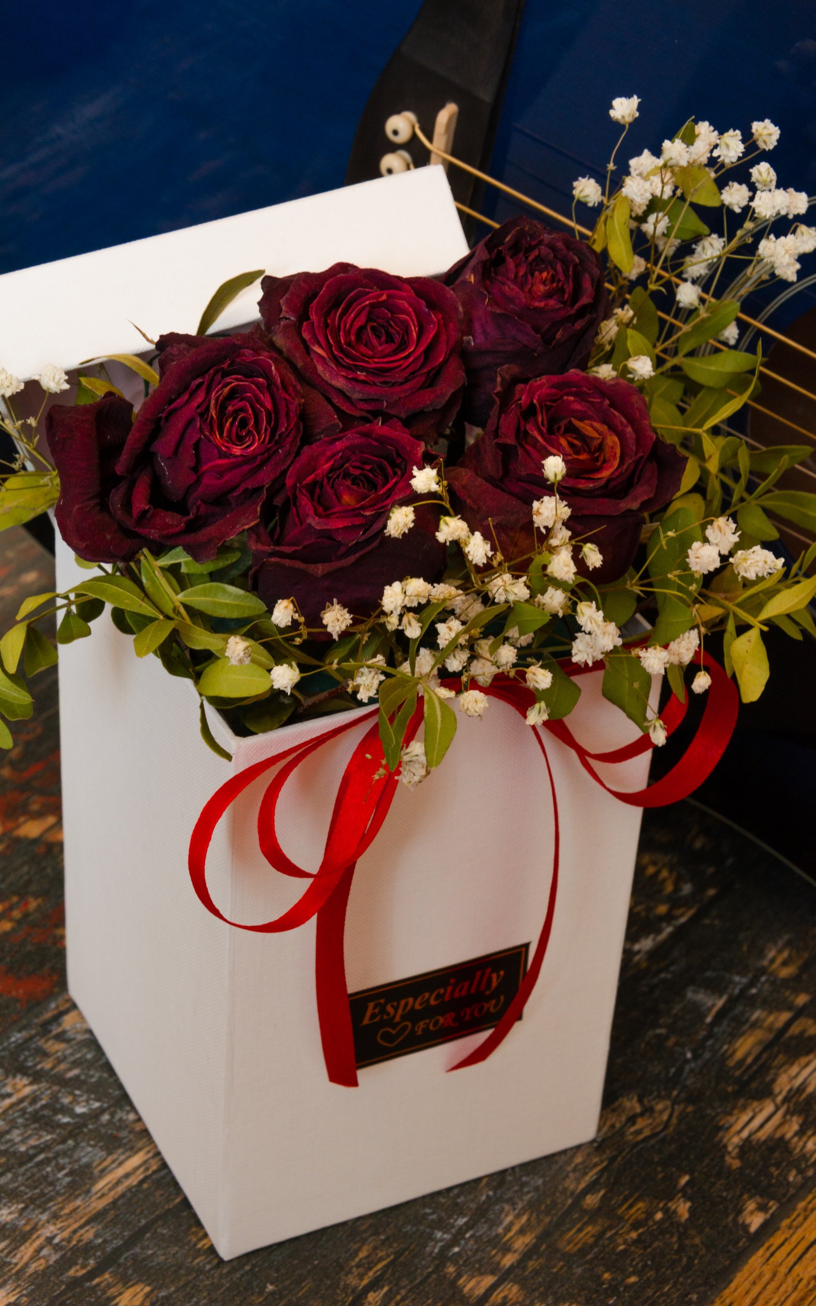 Wallpaper: Valentine's Day, bouquet of roses, gift - 1600x2560