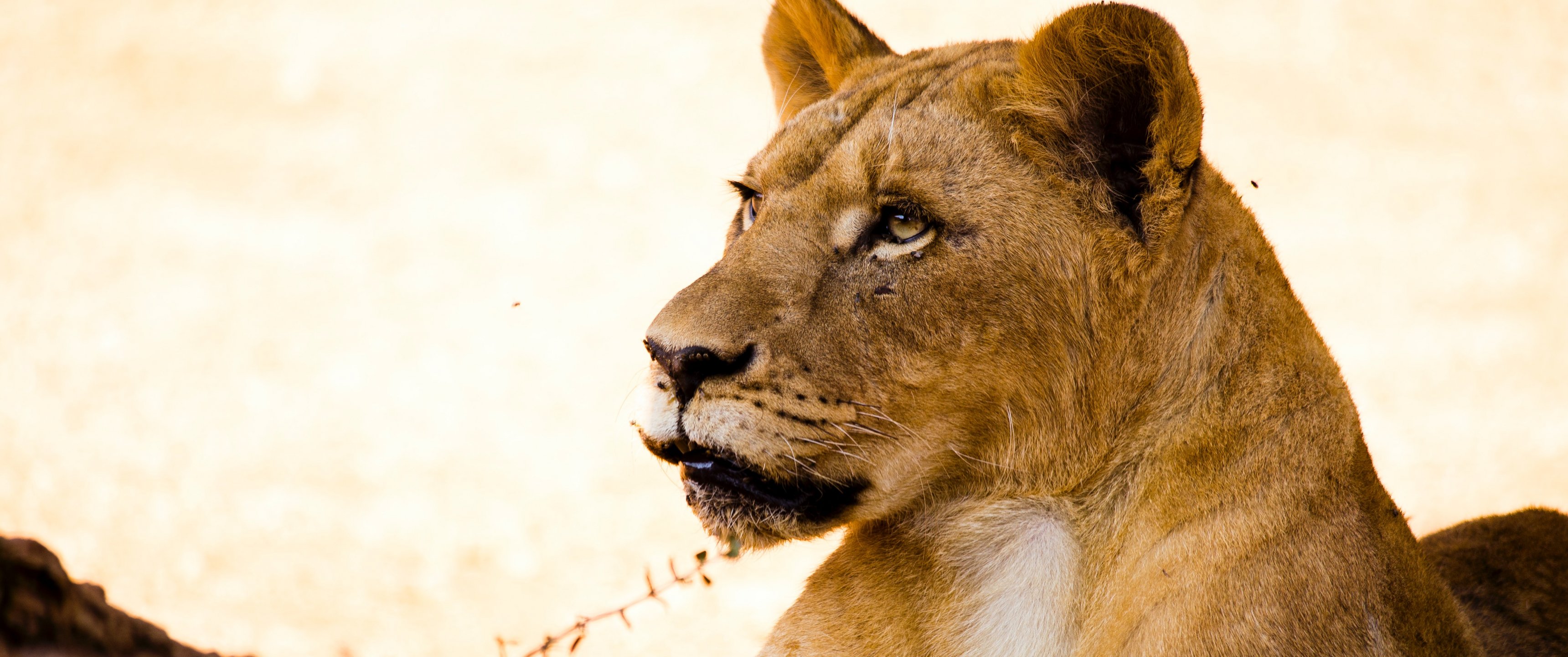 Wallpaper: lioness, predator, wild nature - 3440x1440