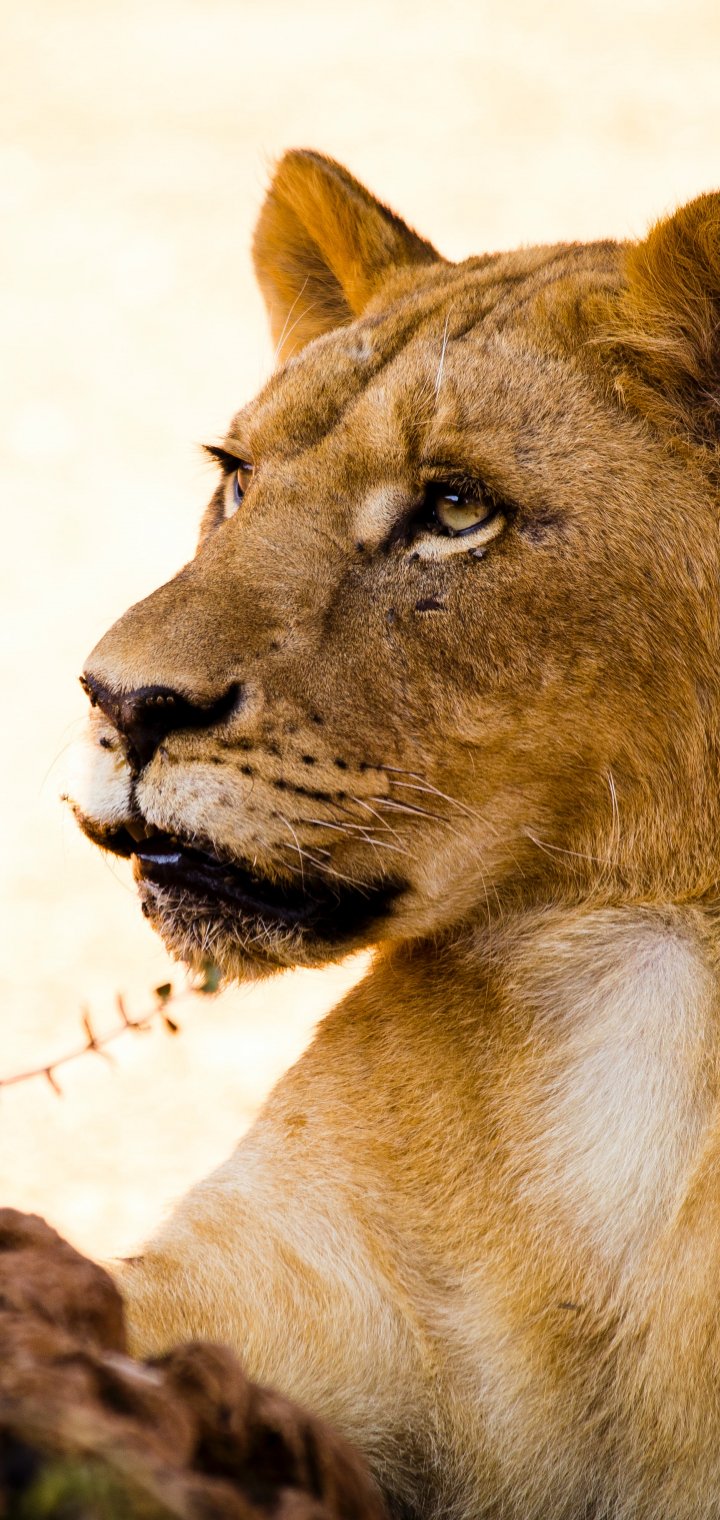 Wallpaper: lioness, predator, wild nature - 720x1520