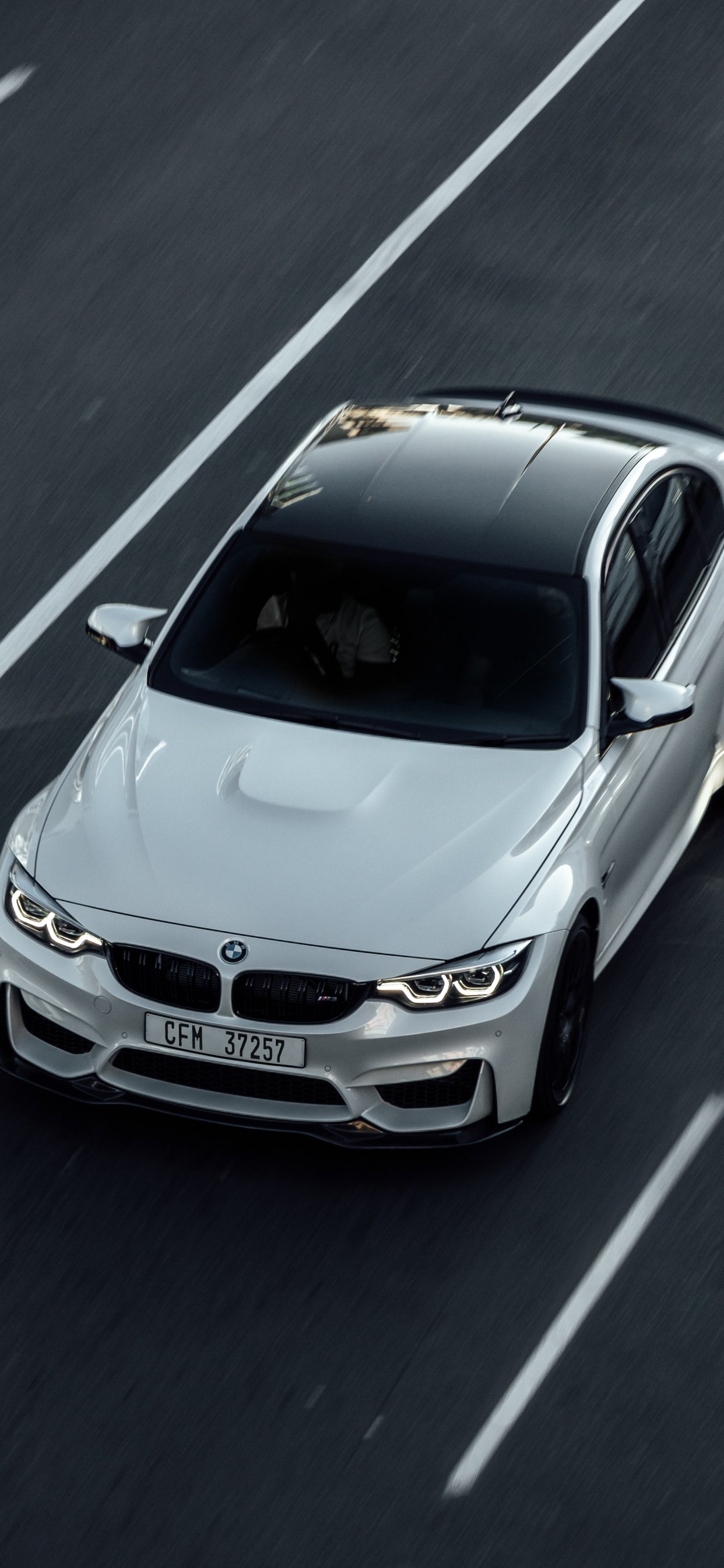 Wallpaper: white bmw, top view - 1242x2688