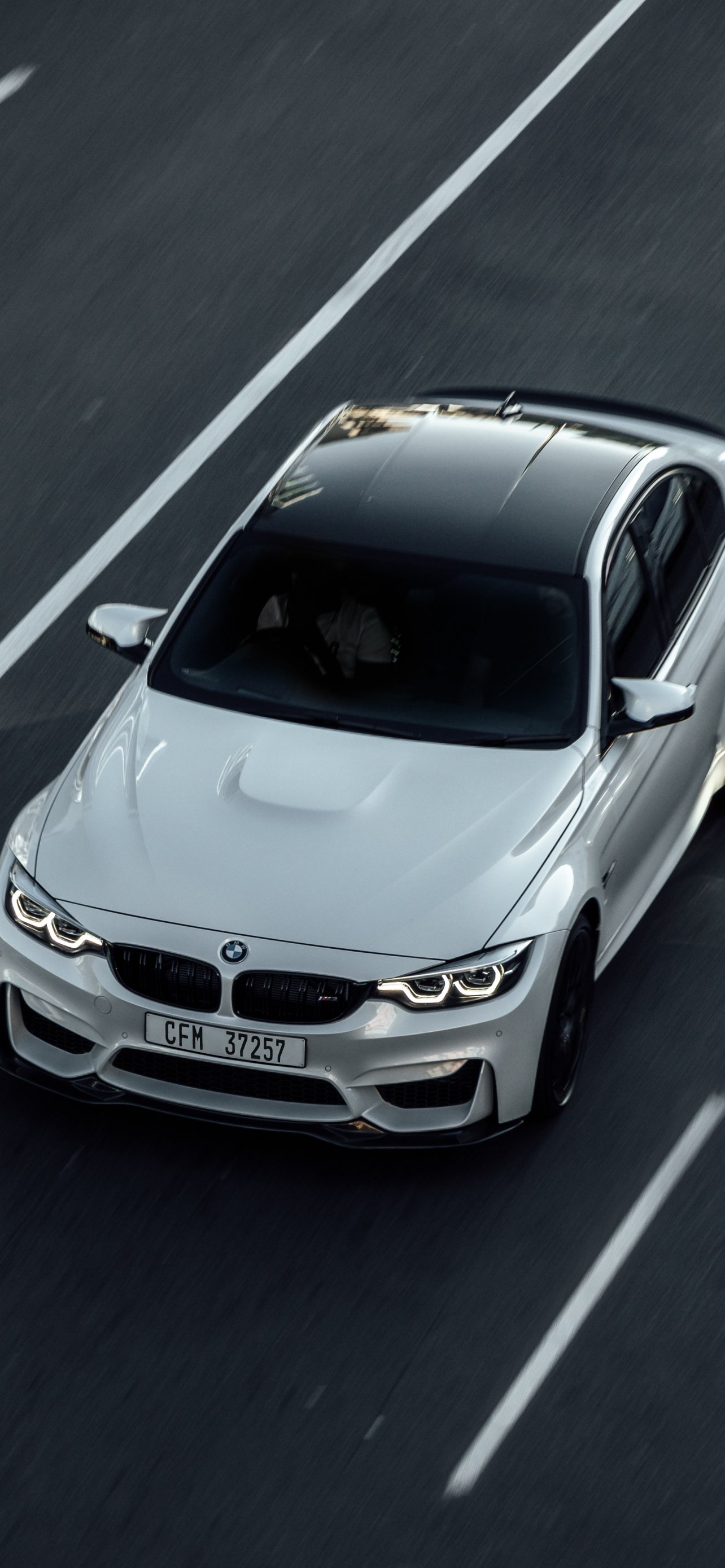 Wallpaper: white bmw, top view - 1284x2778