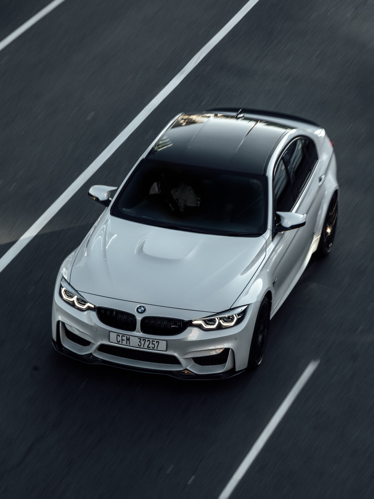 Wallpaper: white bmw, top view - 1536x2048