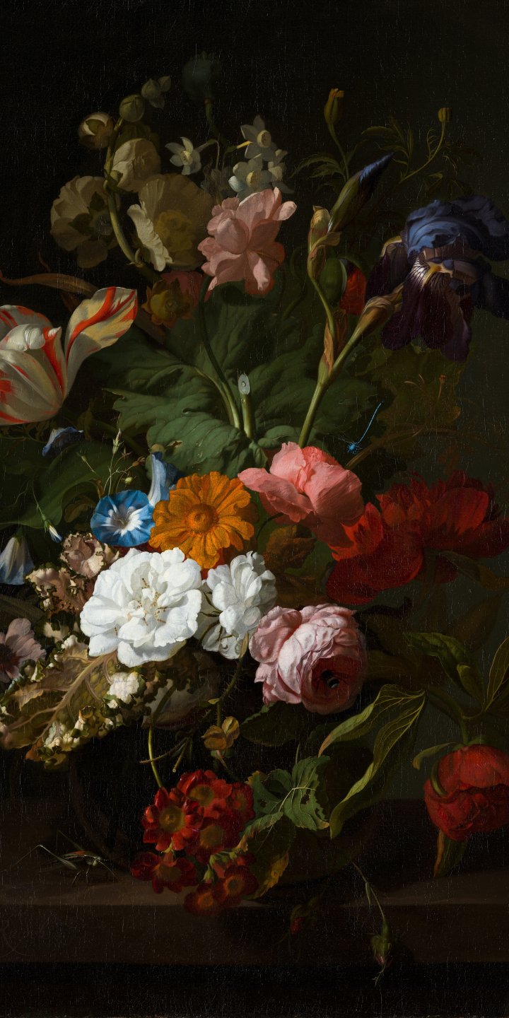 Wallpaper: oil painting, flower arrangement, dark - 720x1440