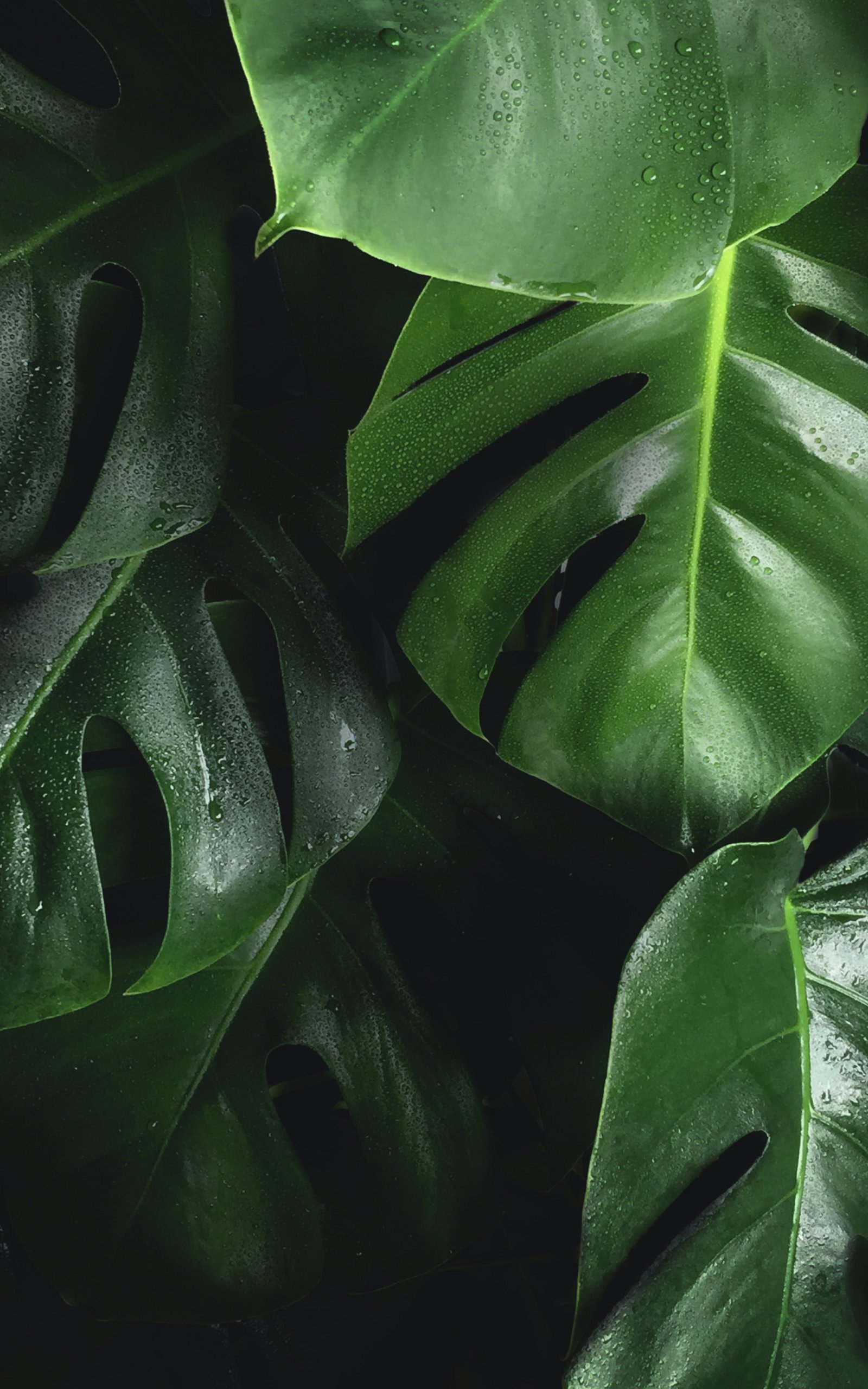 Wallpaper: leaves, water droplets - 1600x2560