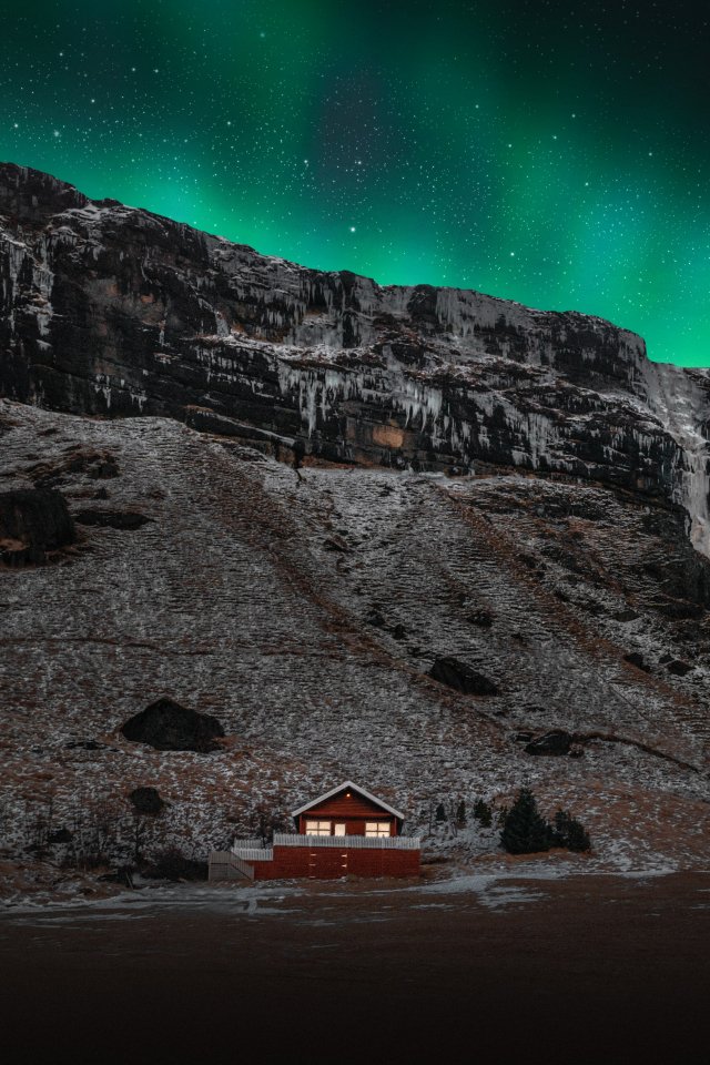 Wallpaper: Iceland, lake house - 640x960