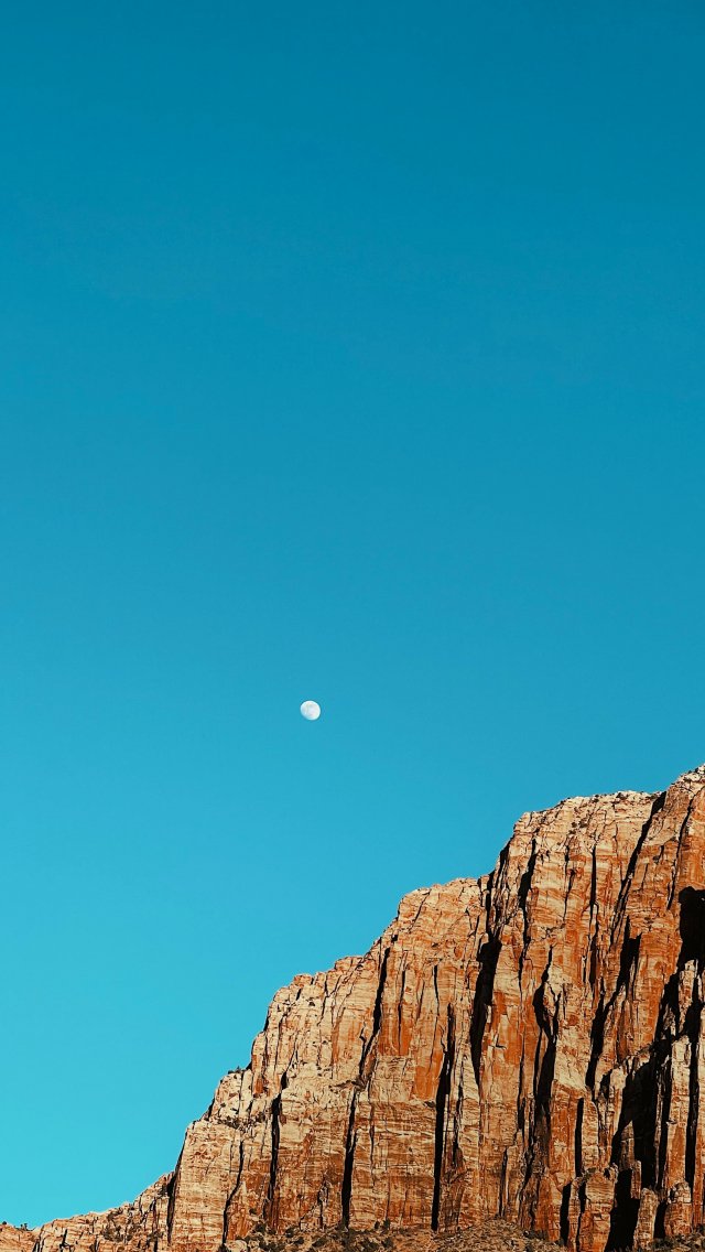 mountains, moon, day Wallpaper 640x1136