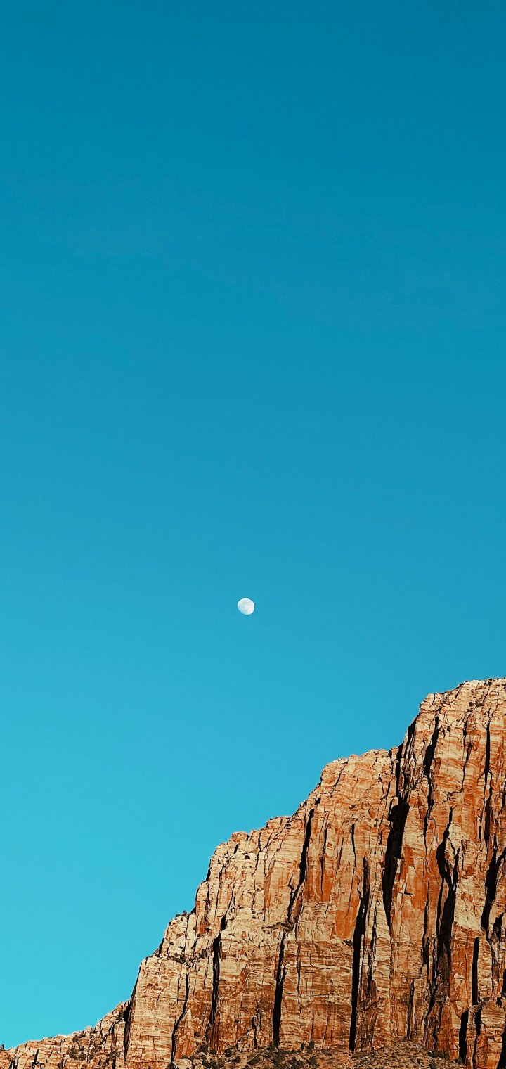 mountains, moon, day Wallpaper 720x1520