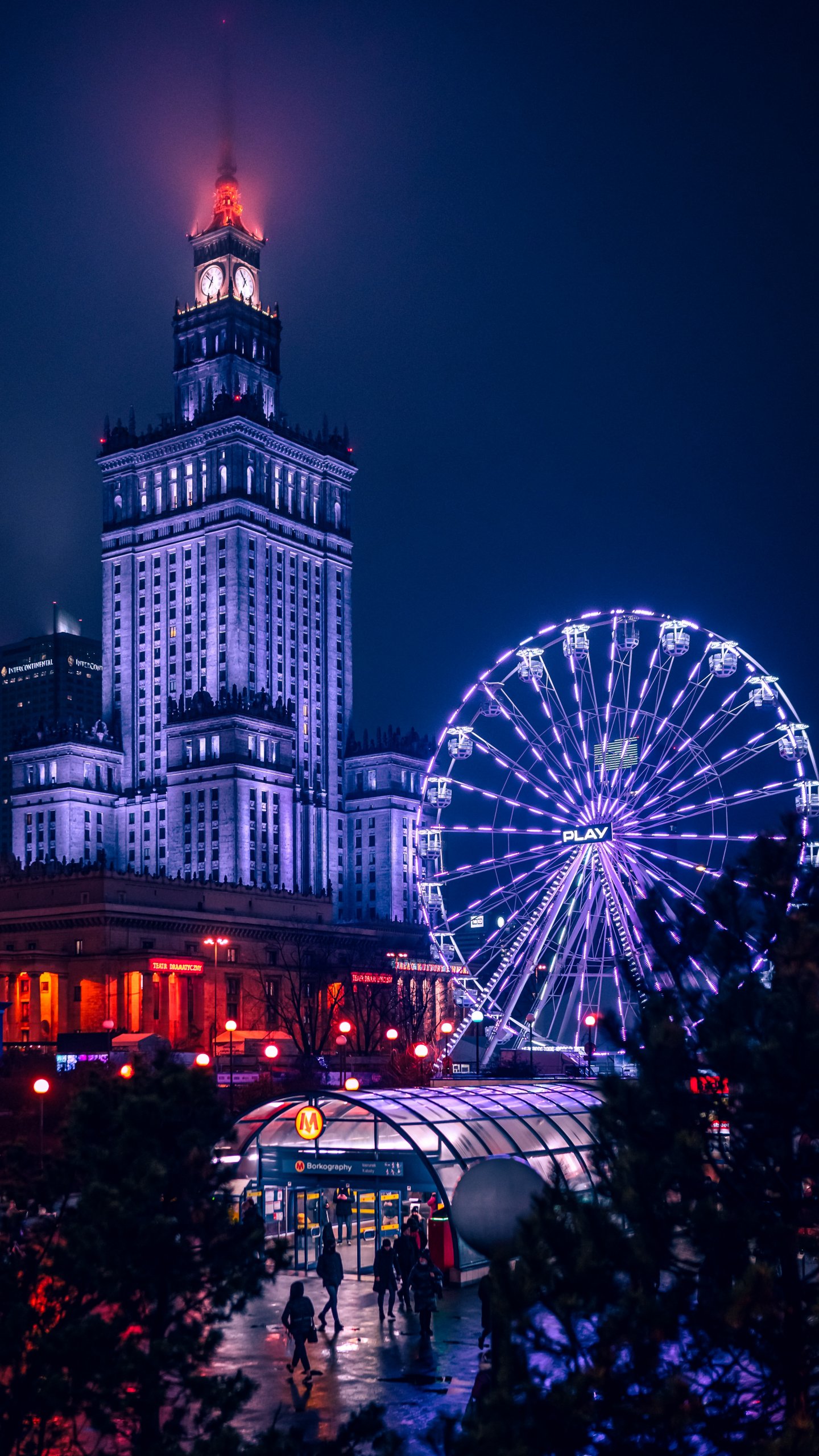 Wallpaper: Warsaw, Poland, night city - 1440x2560