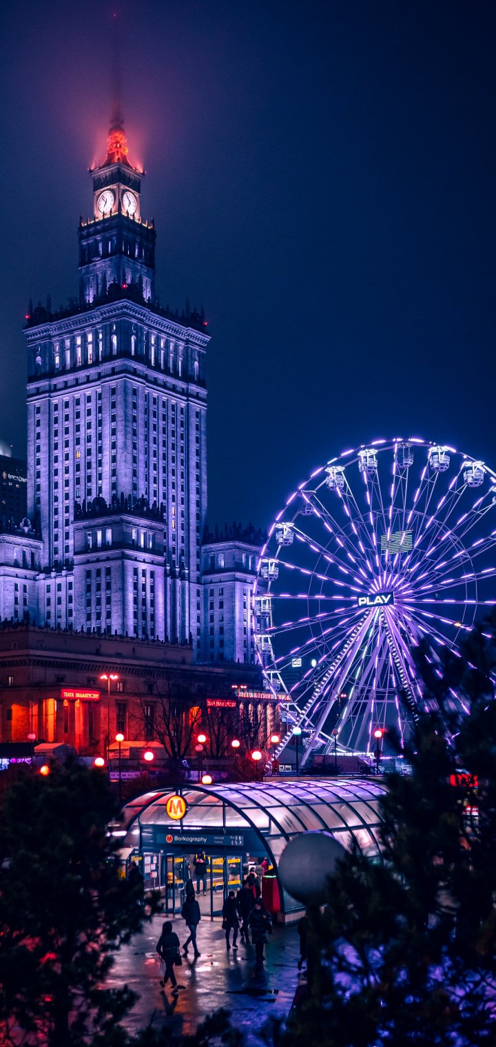 Wallpaper: Warsaw, Poland, night city - 720x1520