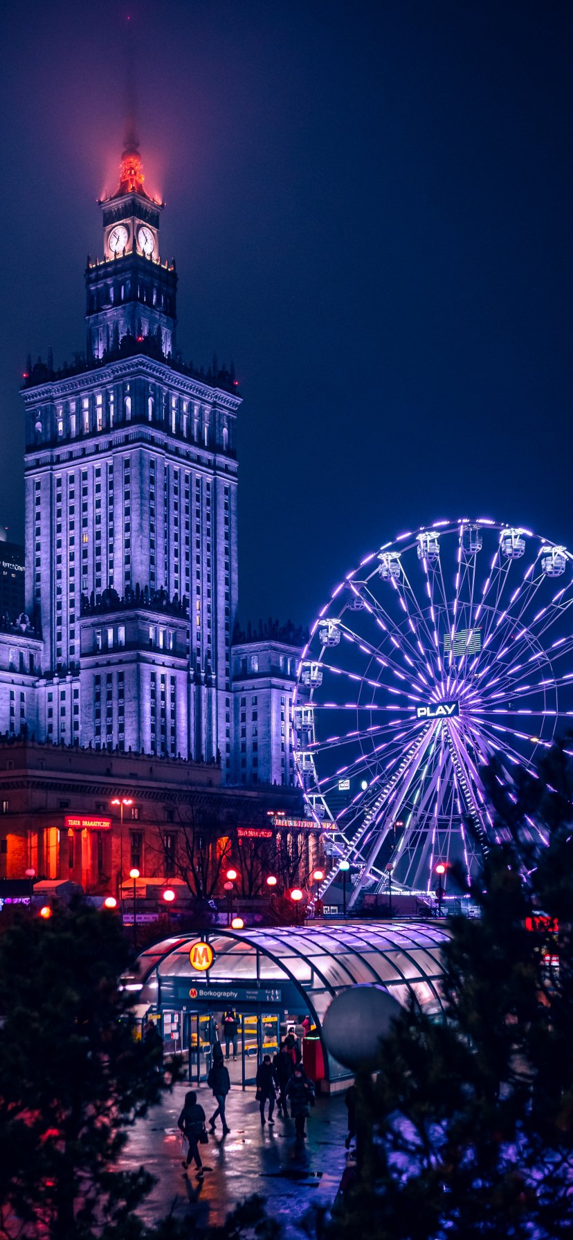 Wallpaper: Warsaw, Poland, night city - 828x1792