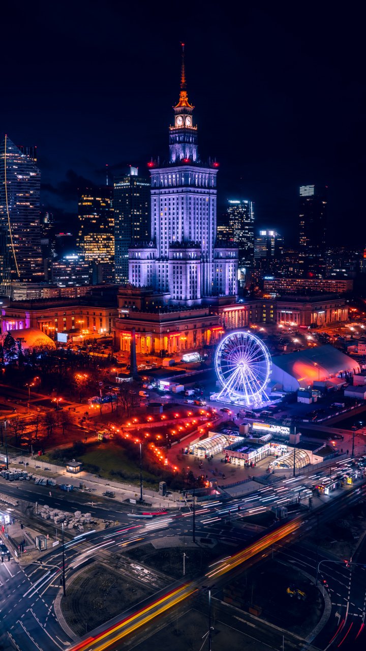 Wallpaper: Warsaw, Poland, night city - 720x1280