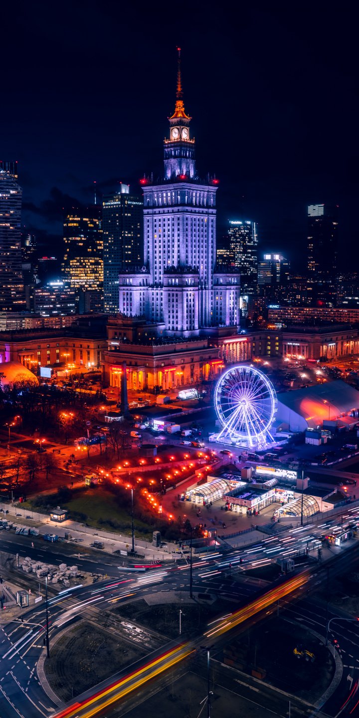 Wallpaper: Warsaw, Poland, night city - 720x1440