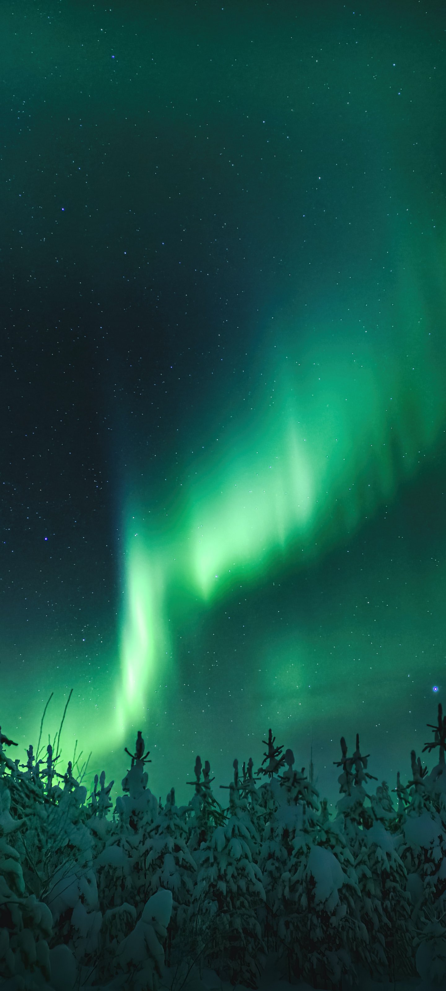 Wallpaper: northern lights, night, green - 1440x3200