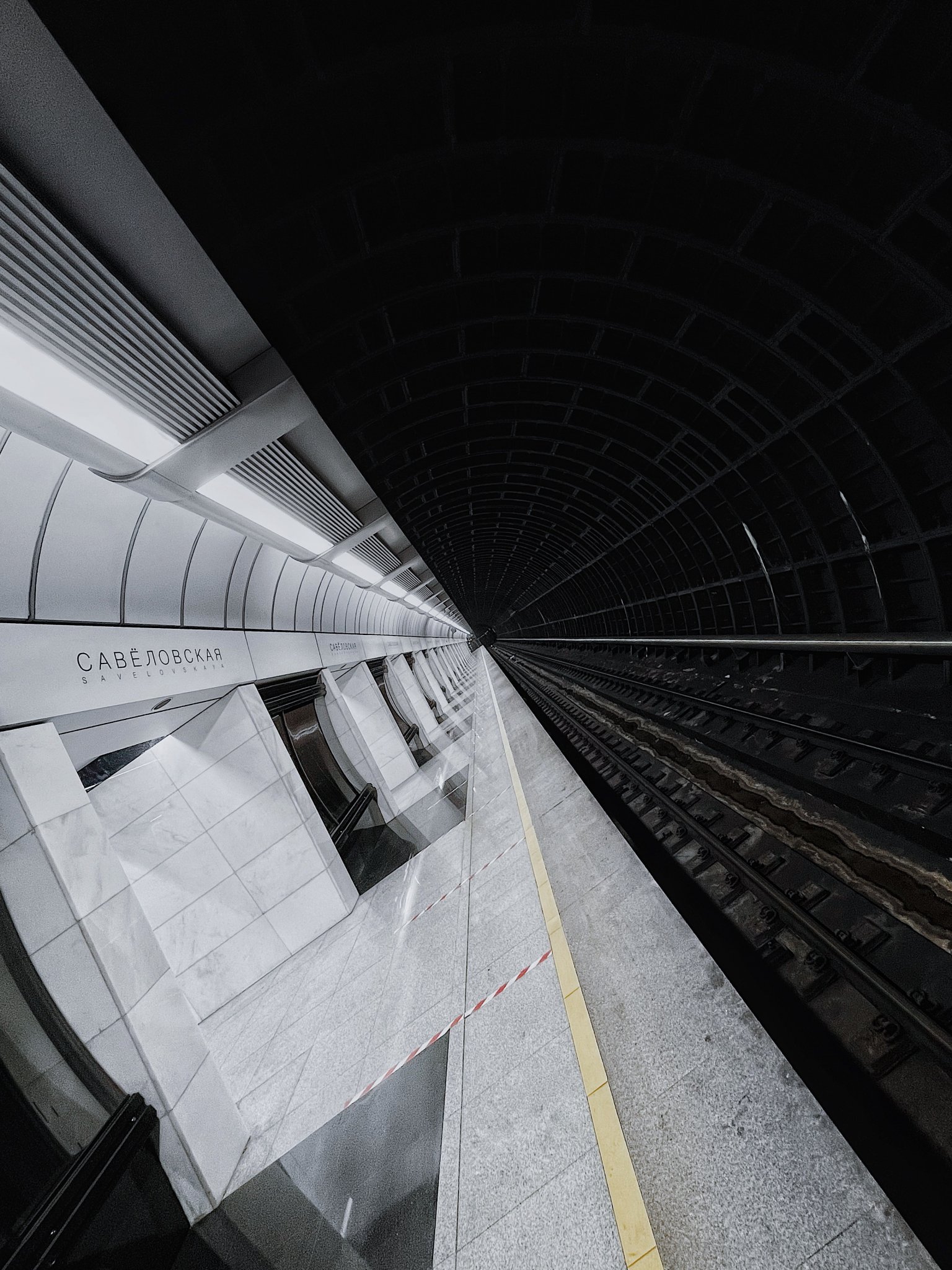 Wallpaper: metro station, tunnel, black and white - 1536x2048