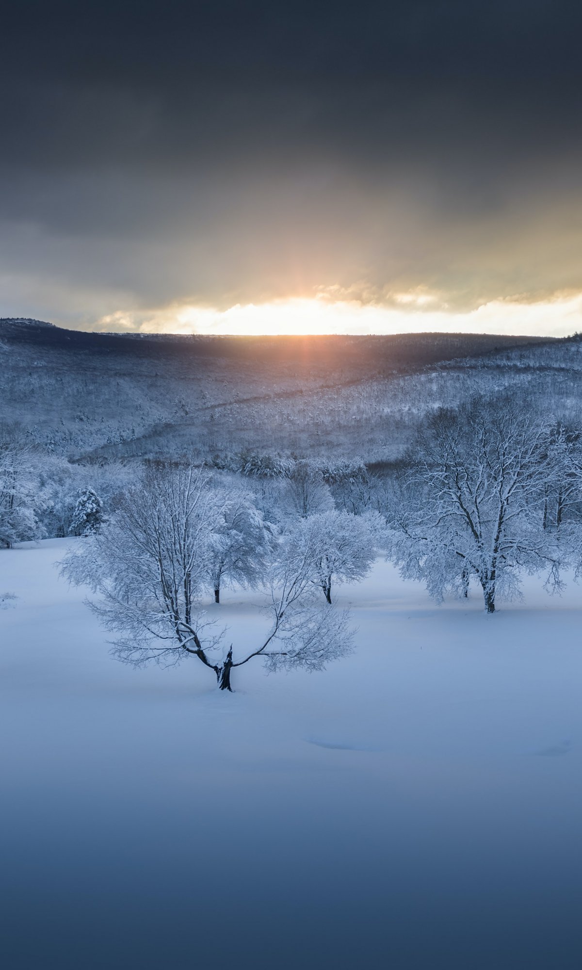 Wallpaper: winter forest, sunset, winter - 1200x2000
