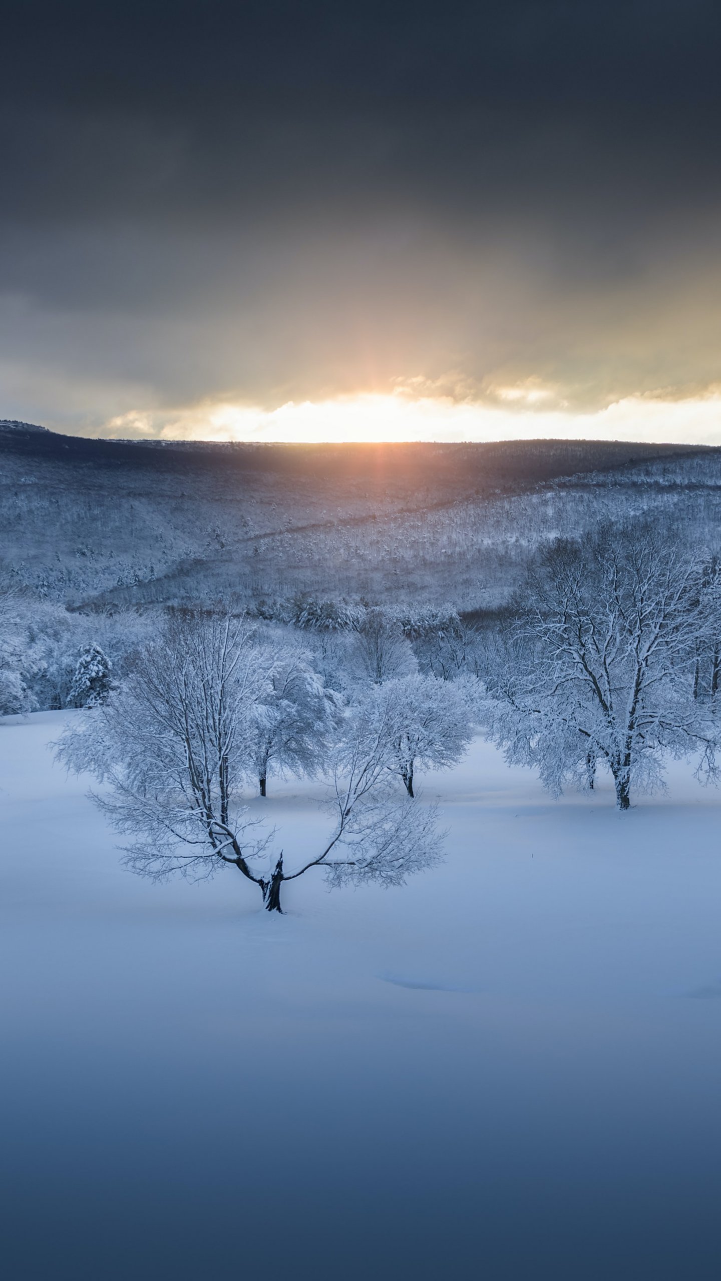 Wallpaper: winter forest, sunset, winter - 1440x2560