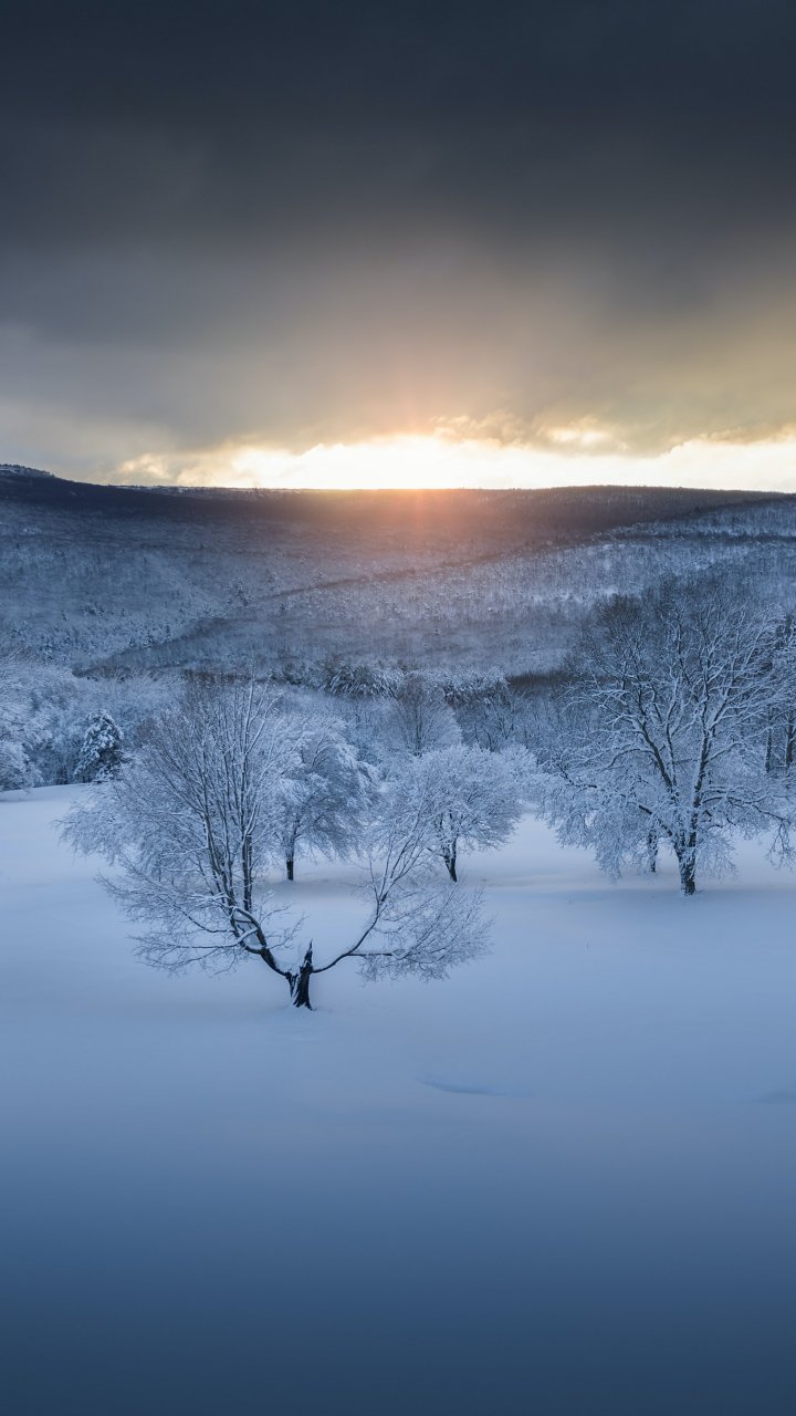 Wallpaper: winter forest, sunset, winter - 720x1280