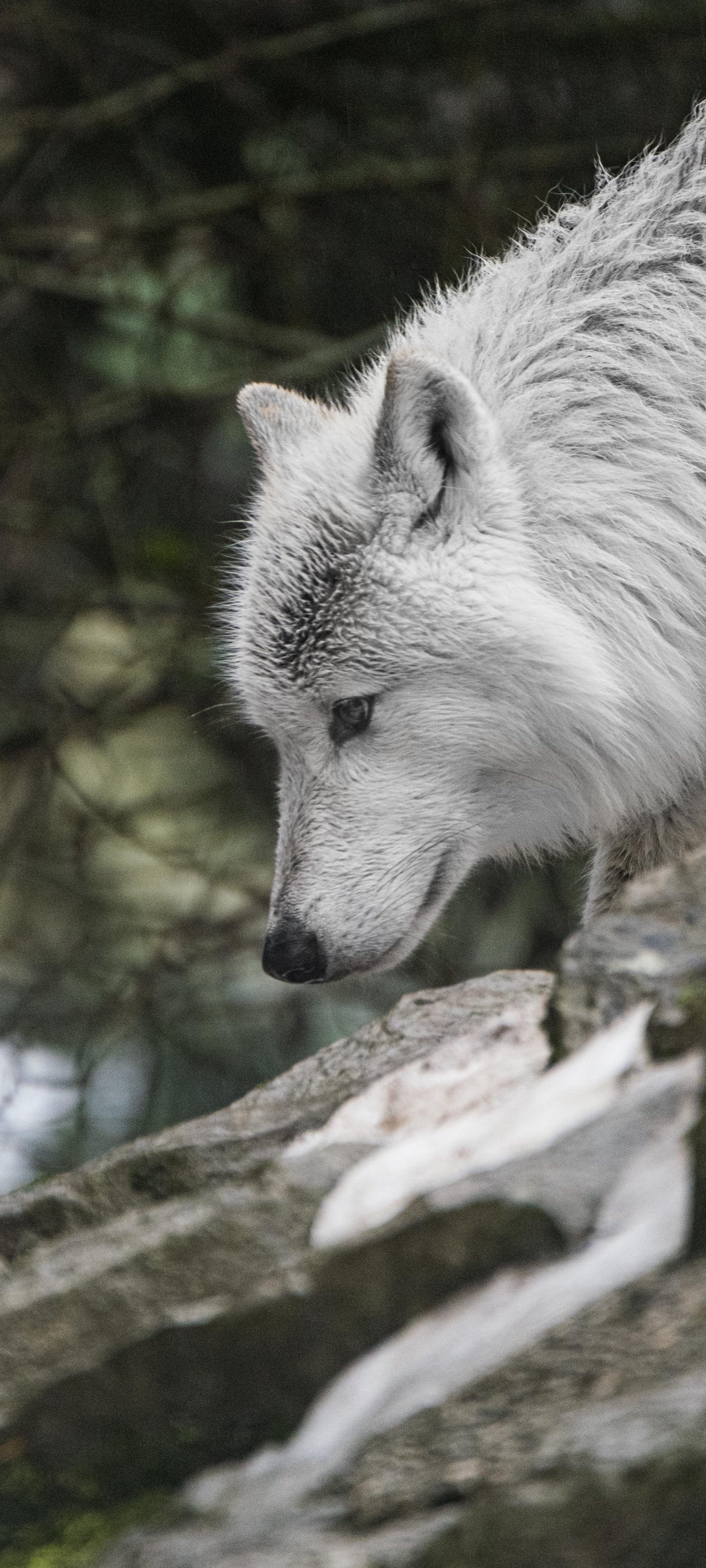 Wallpaper: white wolf, predator, wild nature - 1440x3200