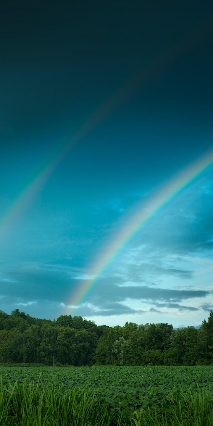 Wallpaper: rainbow, landscape, blue sky - 720x1440