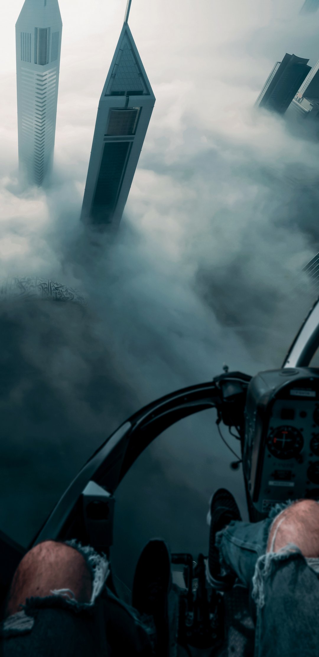 Wallpaper: helicopter cockpit, flight, bird's eye view - 1080x2220