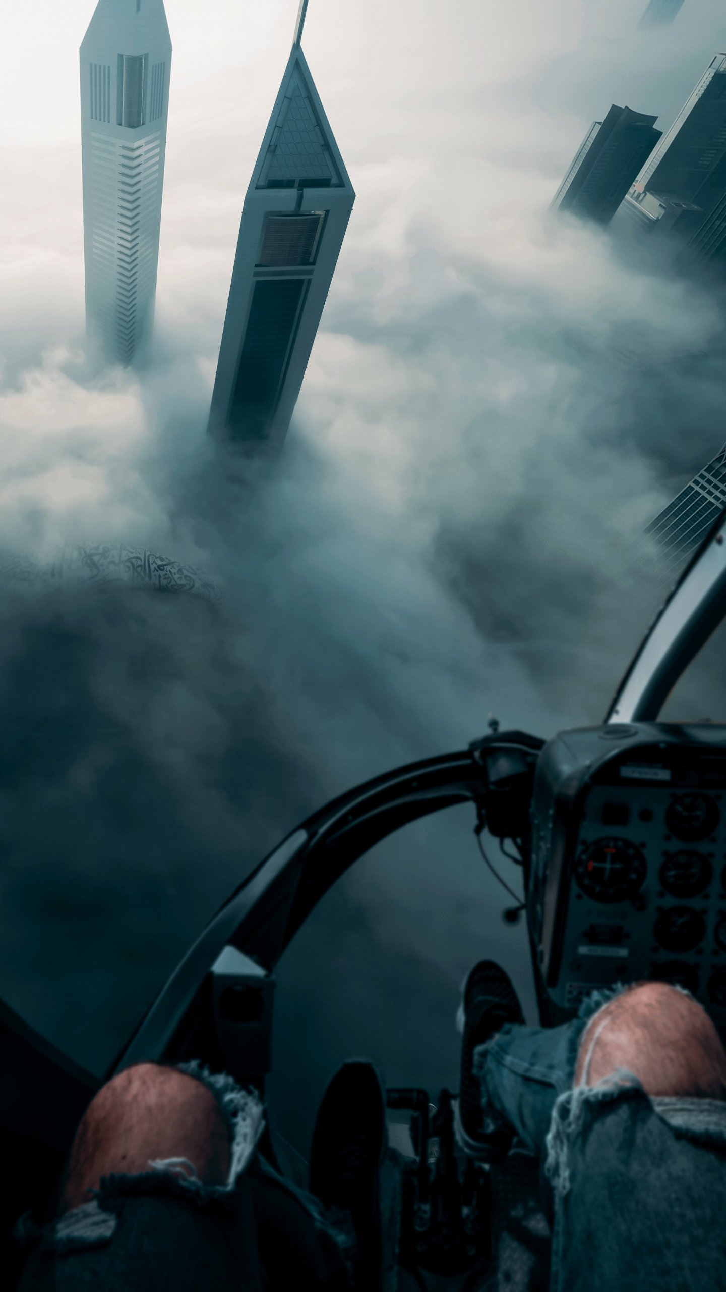 Wallpaper: helicopter cockpit, flight, bird's eye view - 1440x2560