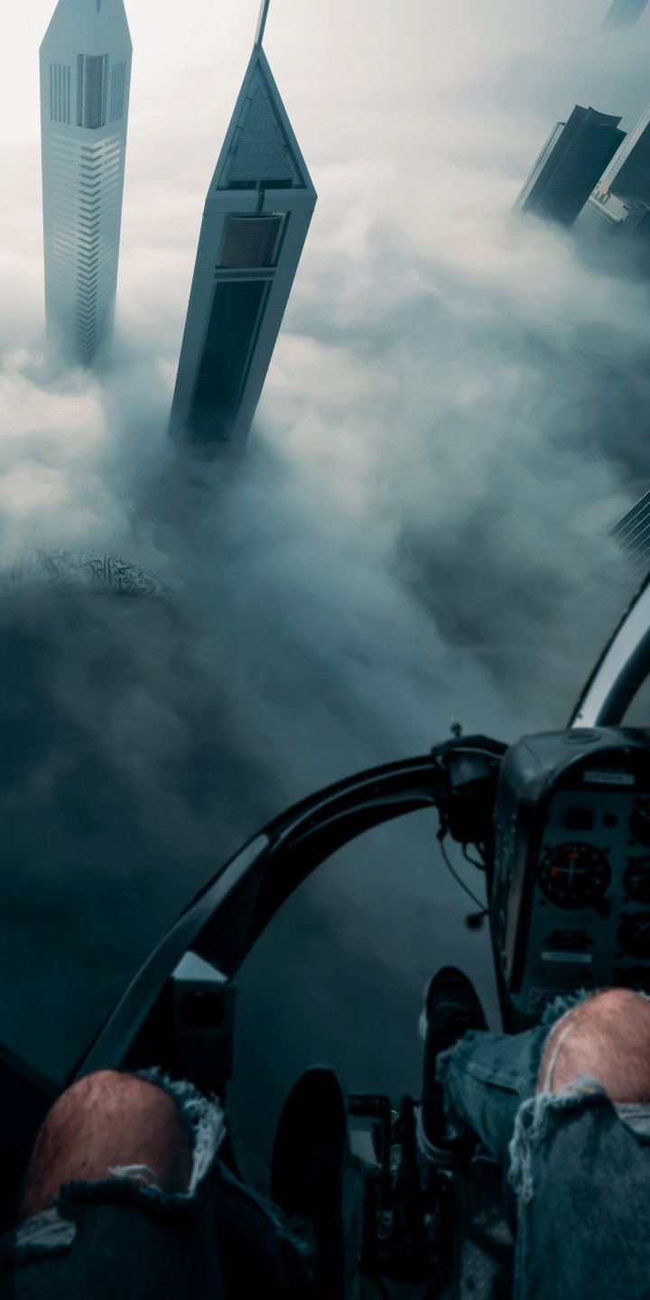 Wallpaper: helicopter cockpit, flight, bird's eye view - 720x1440