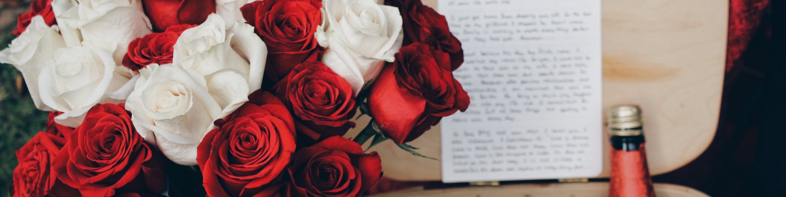 Wallpaper: bouquet of roses, romance, picnic - 1590x400